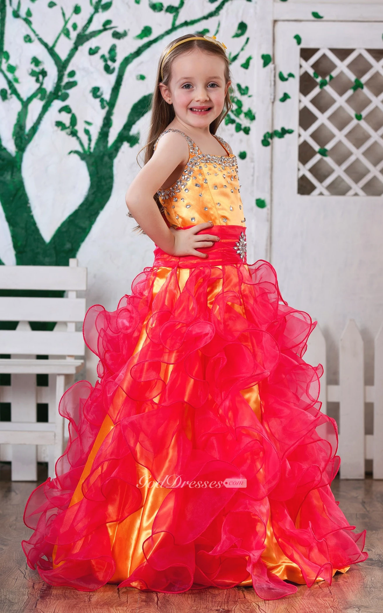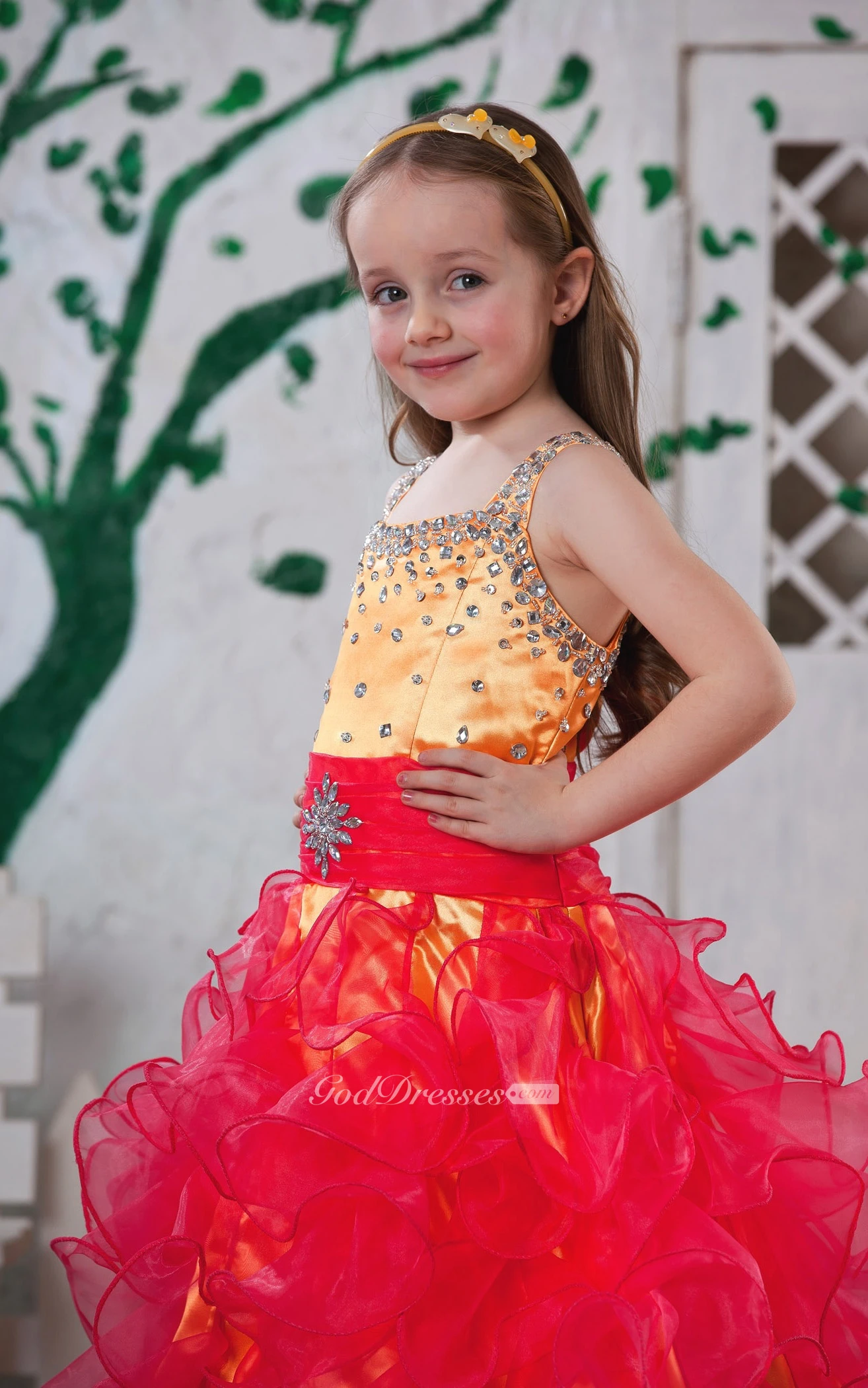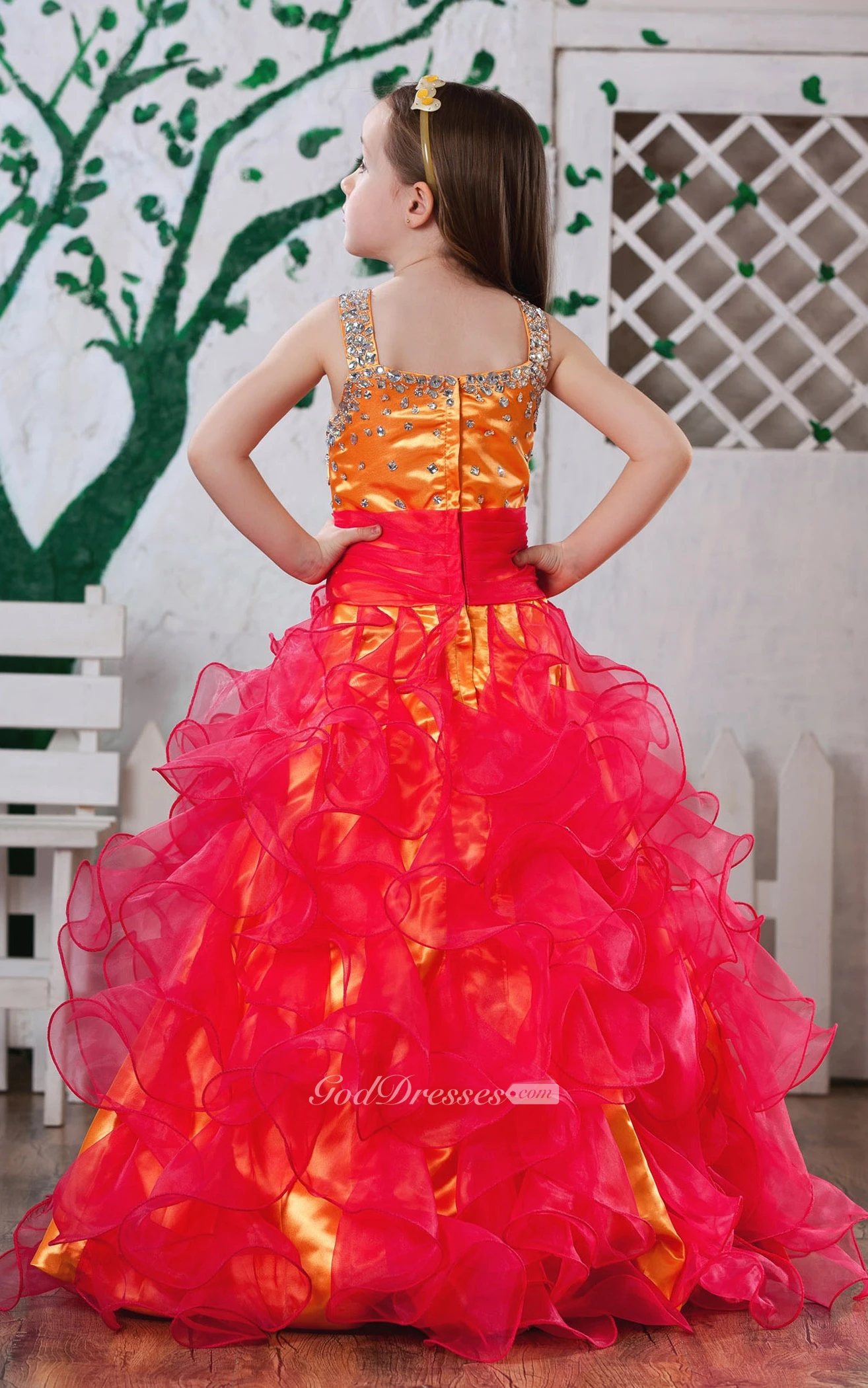 Muti-Color Beaded A-Line Flower Girl Dress With Ruffles