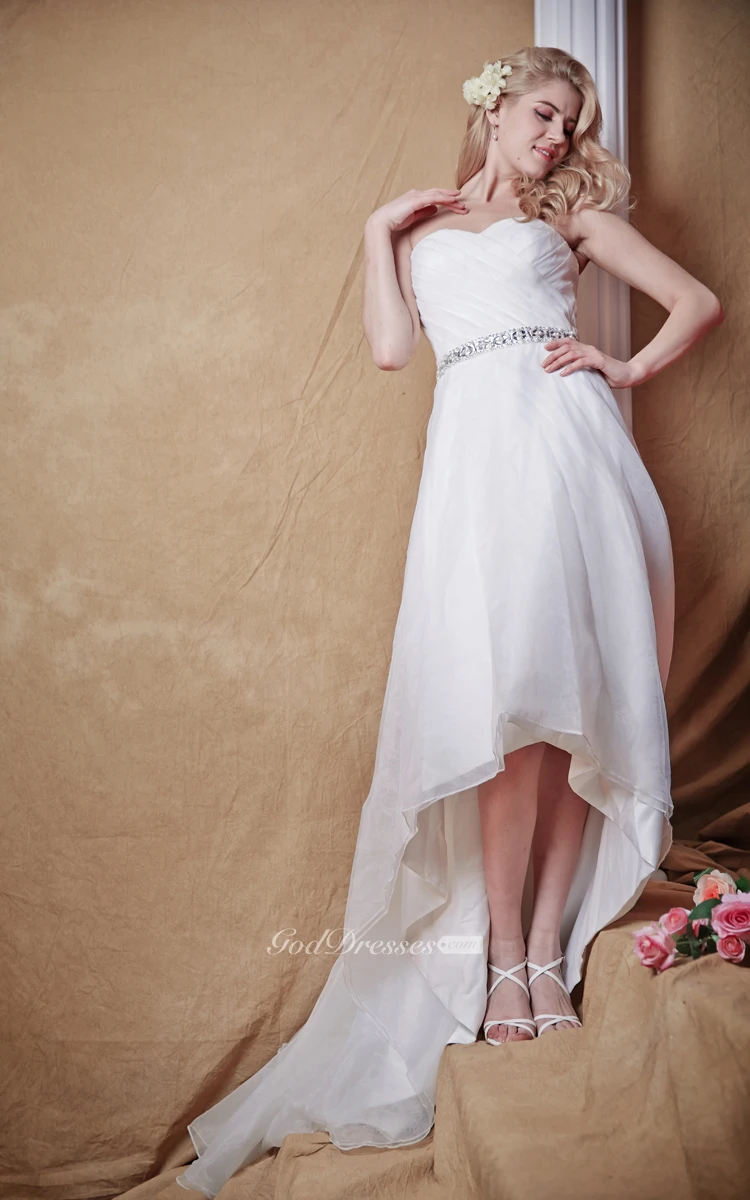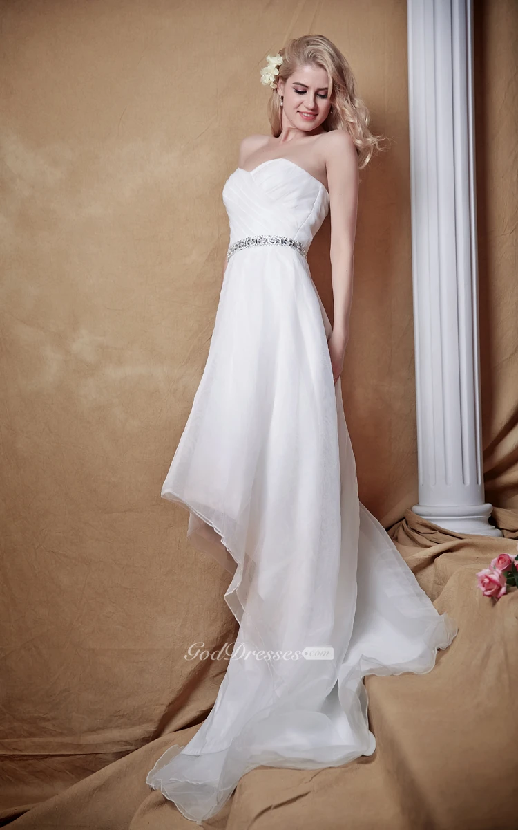 Natural Waist With Sparkling Belt and Hi Low Hemline Modern and Classic Elements