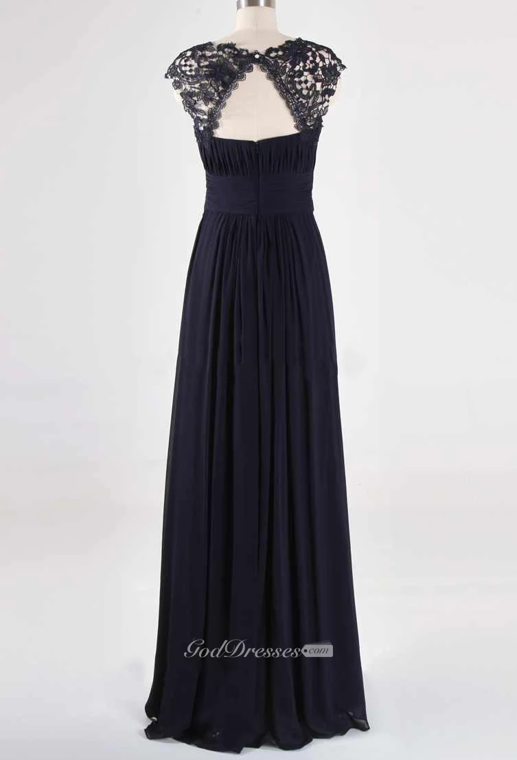 Navy Prom Lace Georgette Bridesmaid Custom Sizes Formal A Line Party Floor Length Evening Prom Long Dress