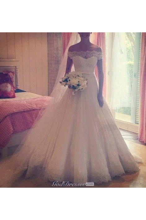 New Arrival Lace A-Line Princess Wedding Dress Tulle Off the Shoulder Bridal Gowns