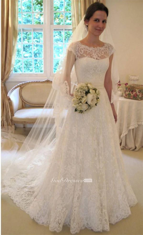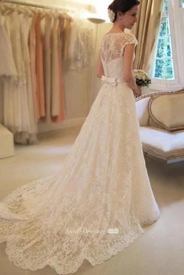 New Arrival Lace A-line Princess Wedding Dresses With Cap Sleeves