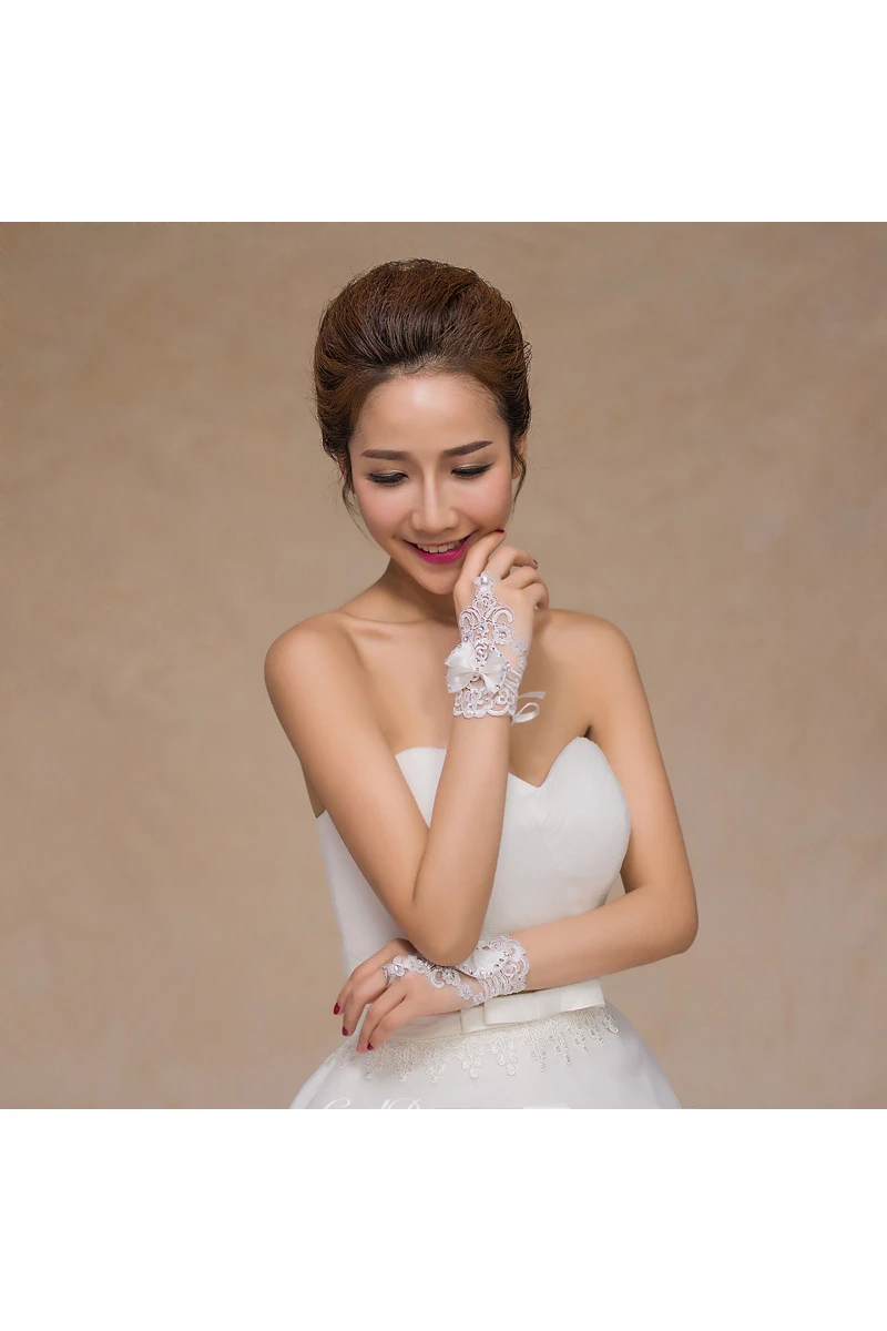 New White Bow Lace Diamond Hook Short Paragraph Gloves