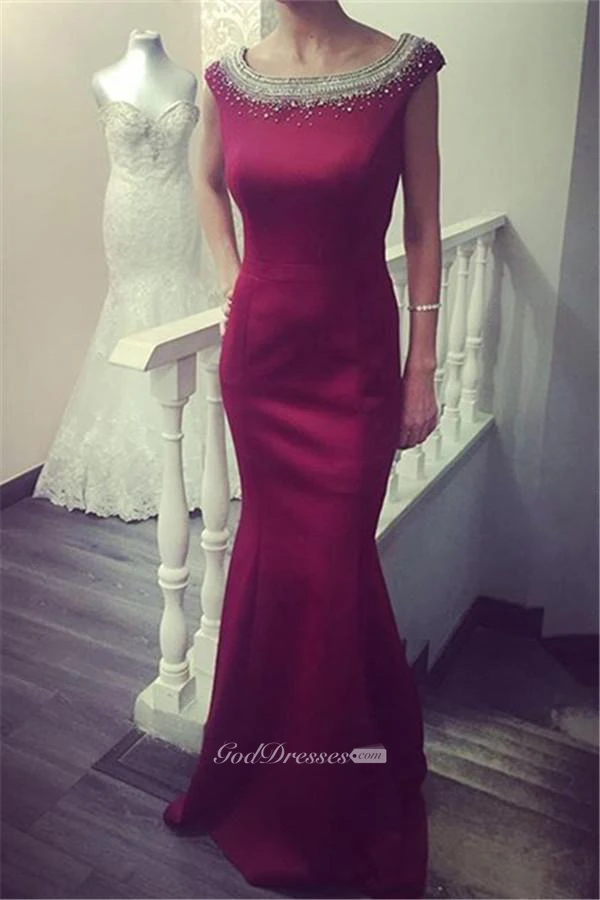 Newest Beadings Ruffles Prom Dress Bodycon Jewel Cap Sleeve