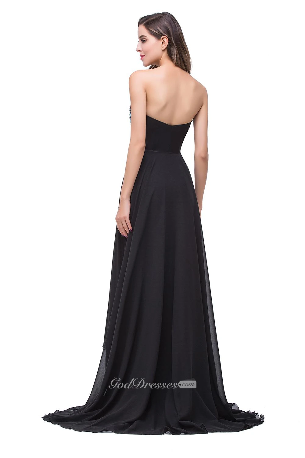 Newest Black Chiffon Peacock Prom Dress Hi-Lo Sweep Train