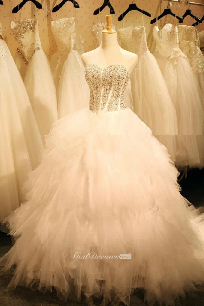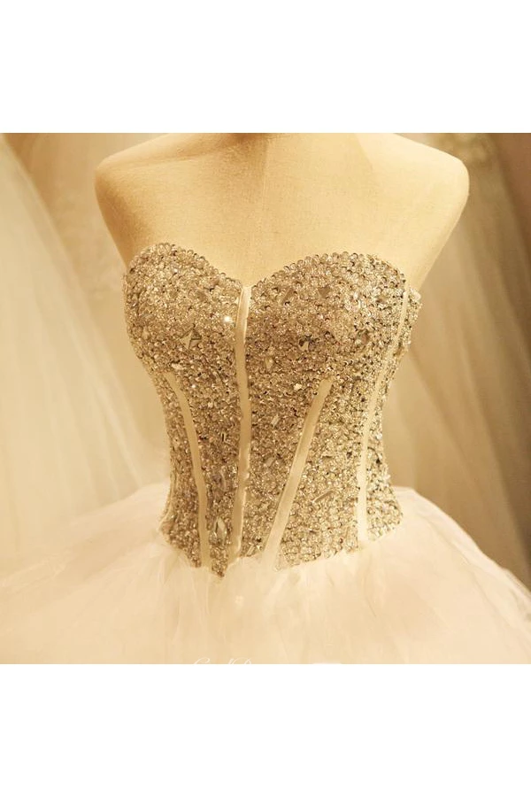 Newest Crystals Ruffles Wedding Dress Sweetheart Sleeveless Lace-up