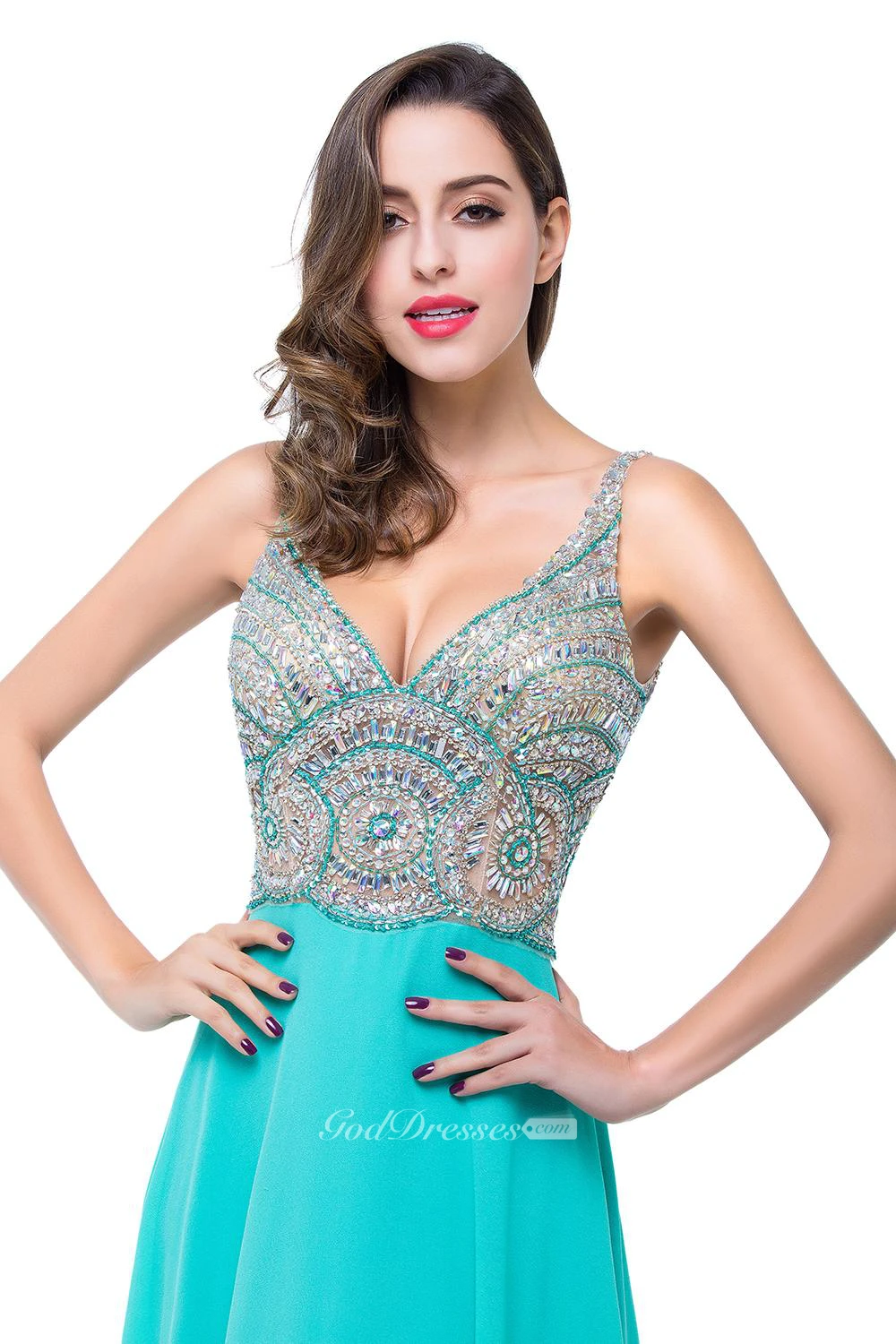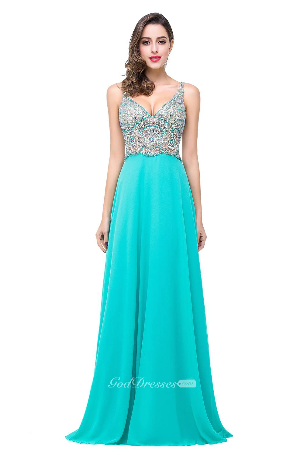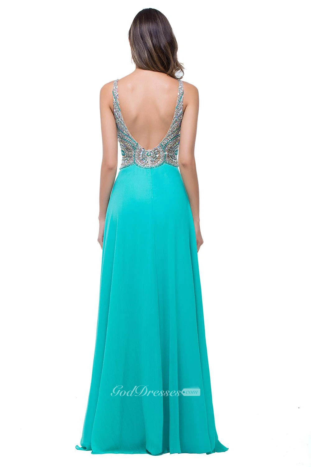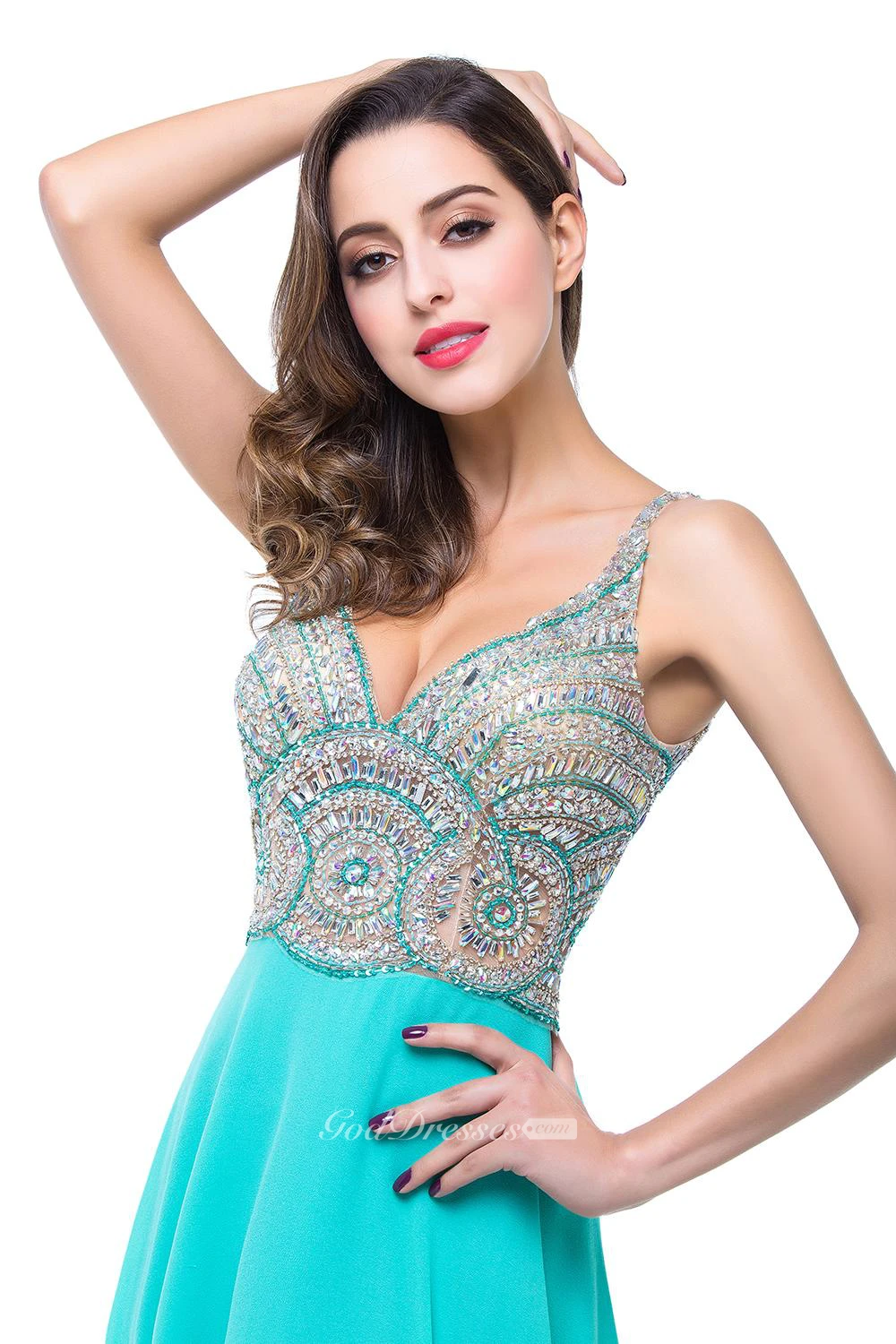 Newest Crystals Spaghetti Strap Prom Dress Open Back A-line
