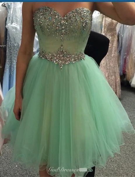 Newest Crystals Tulle Short Homecoming Dress Sweetheart Sleeveless