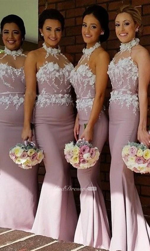 Newest Halter Sleeveless Mermaid Bridesmaid Dress Lace Appliques