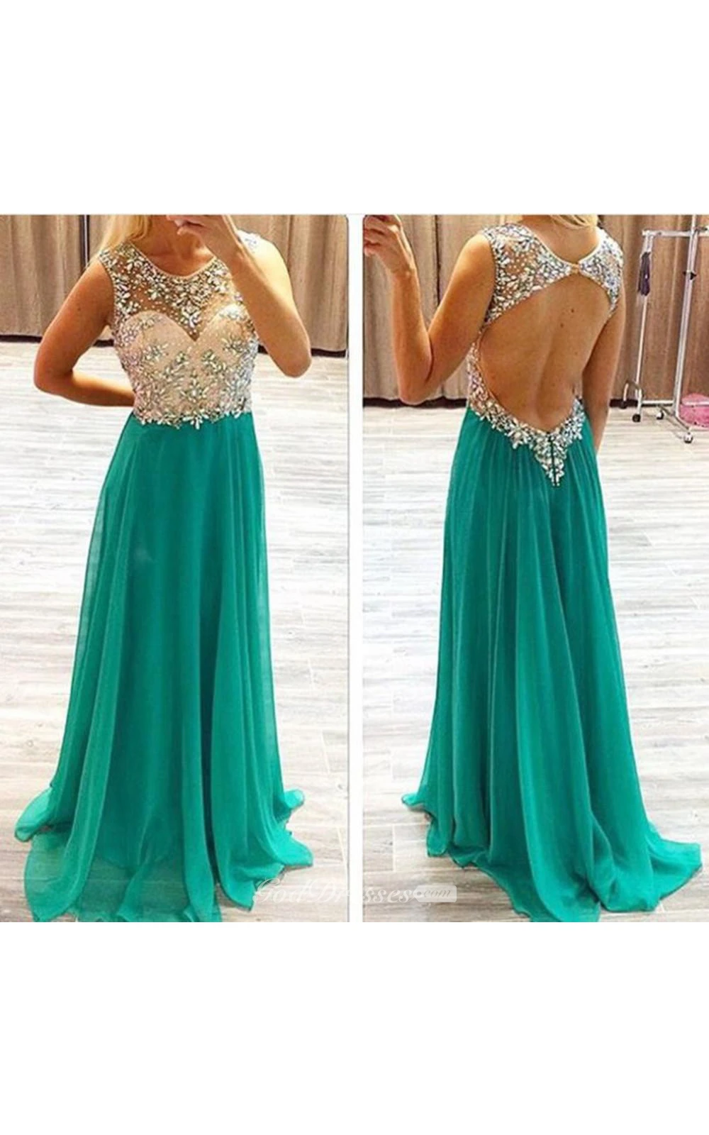Newest Illusion Crystals Chiffon Evening Dress Zipper Sweep Train