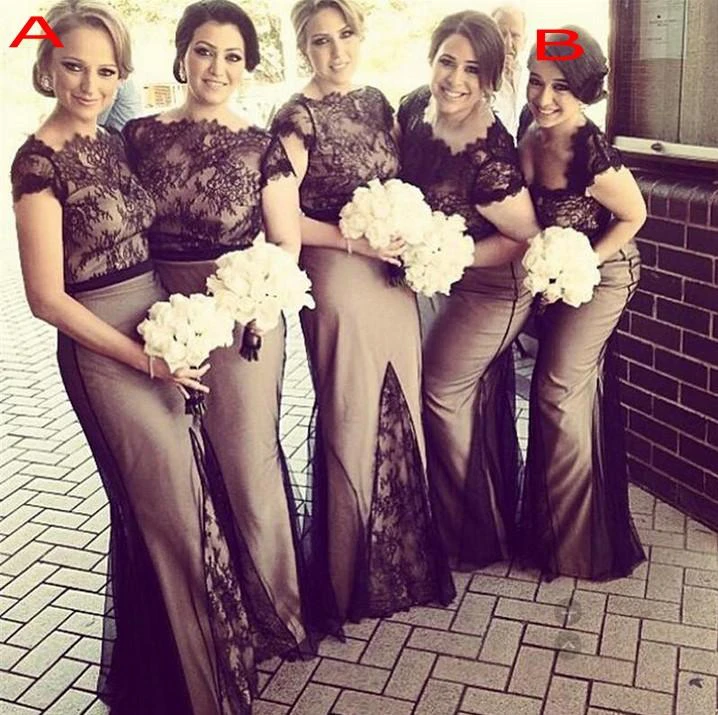 Newest Lace Mermaid Bridesmaid Dress Cap Sleeve Floor-length