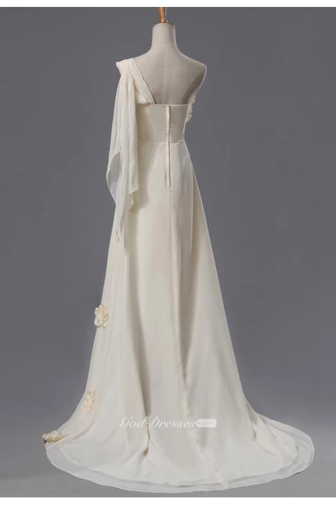 Newest One Shoulder Flowers Wedding Dress A-line Chiffon