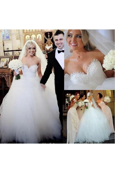 Newest White Tulle Lace Beadings Wedding Dress Sweetheart Sleeveless