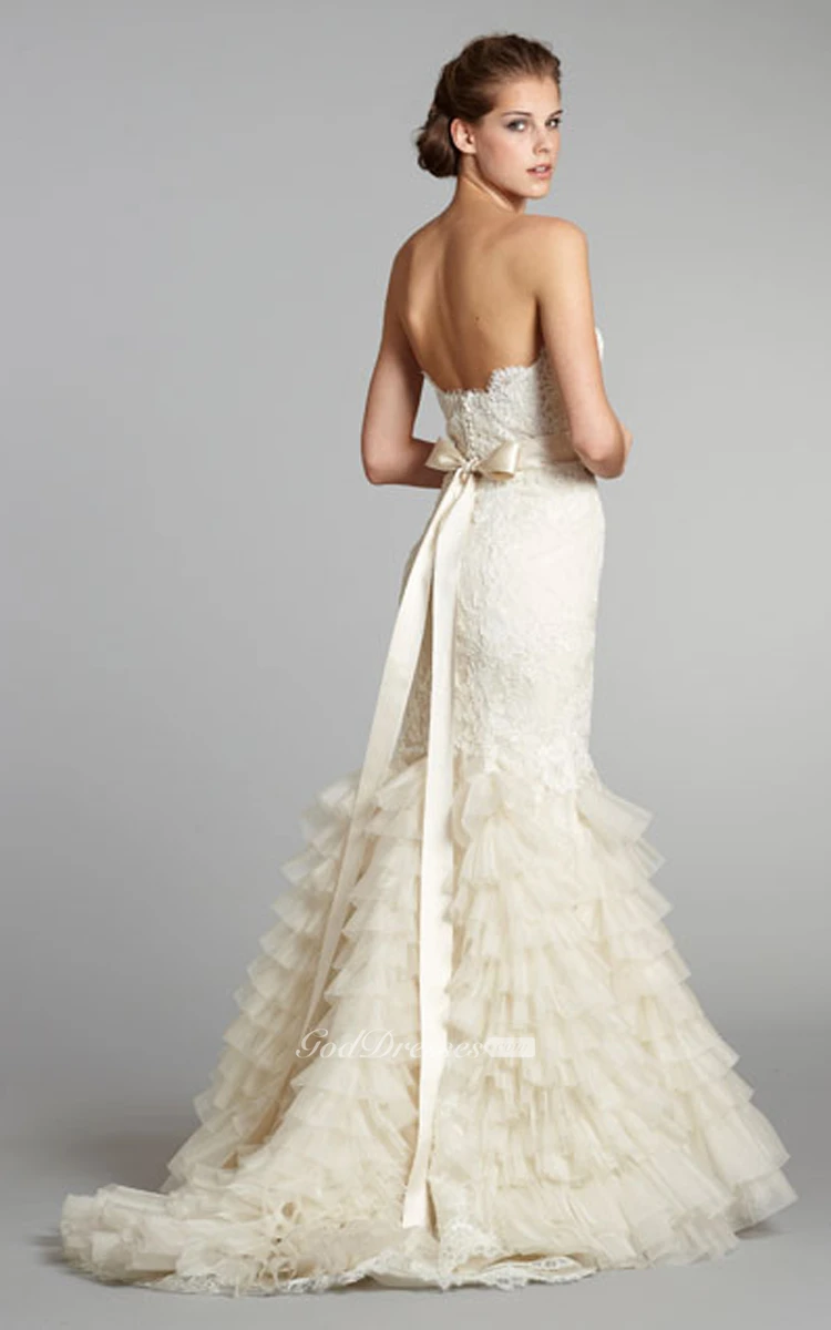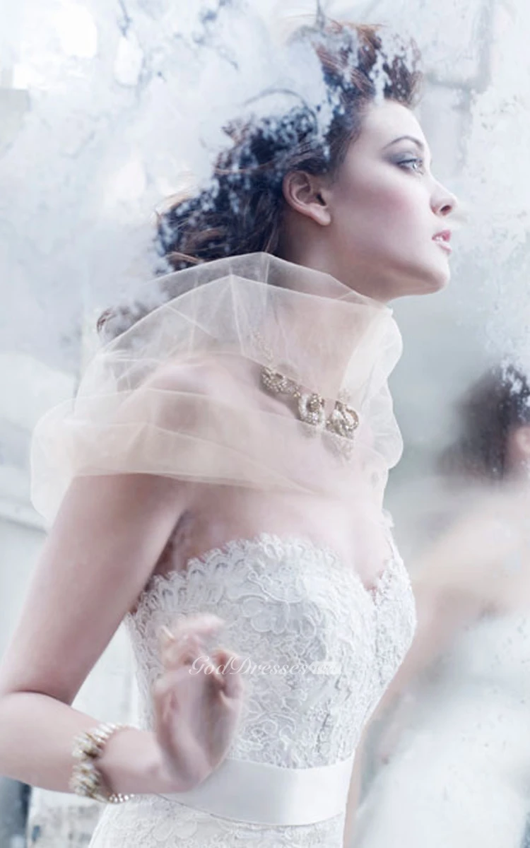 Noble Lace Pleated Organza Mermaid Dress With Ribbon