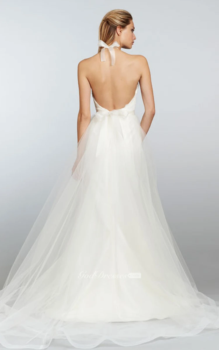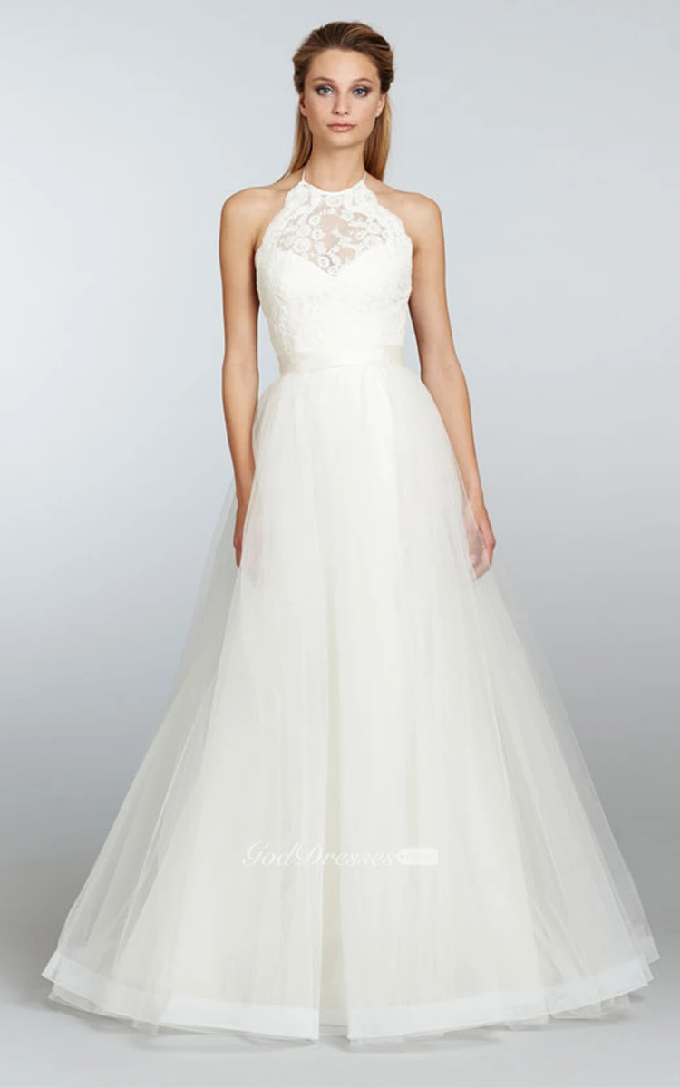 Noble Sleeveless Lace Bodice Tulle Dress With Ribbon