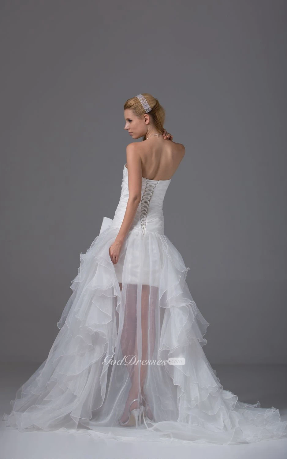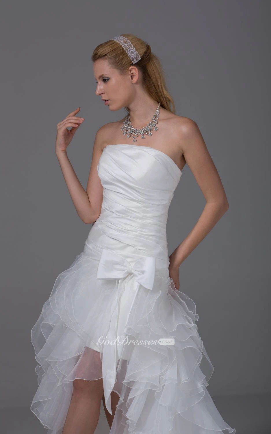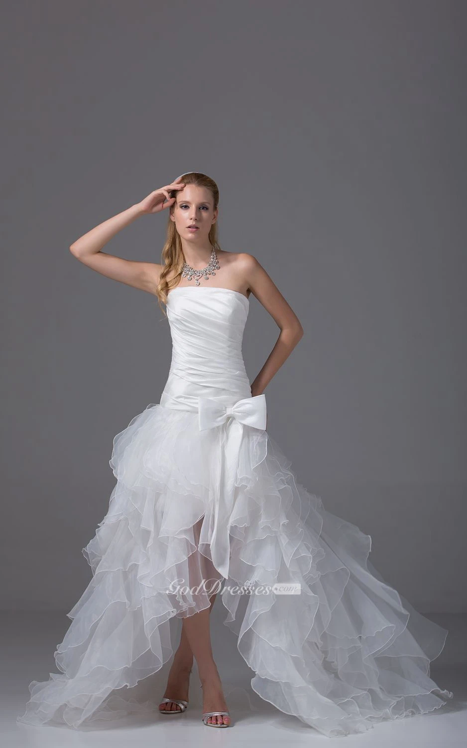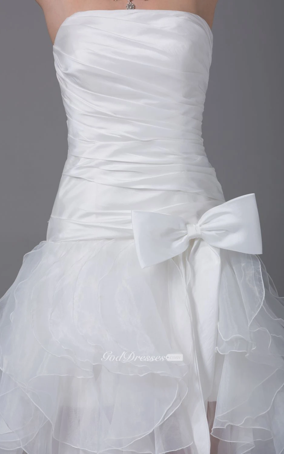 Noble Strapless High-Low Organza Dress With Ruching and Corset Back