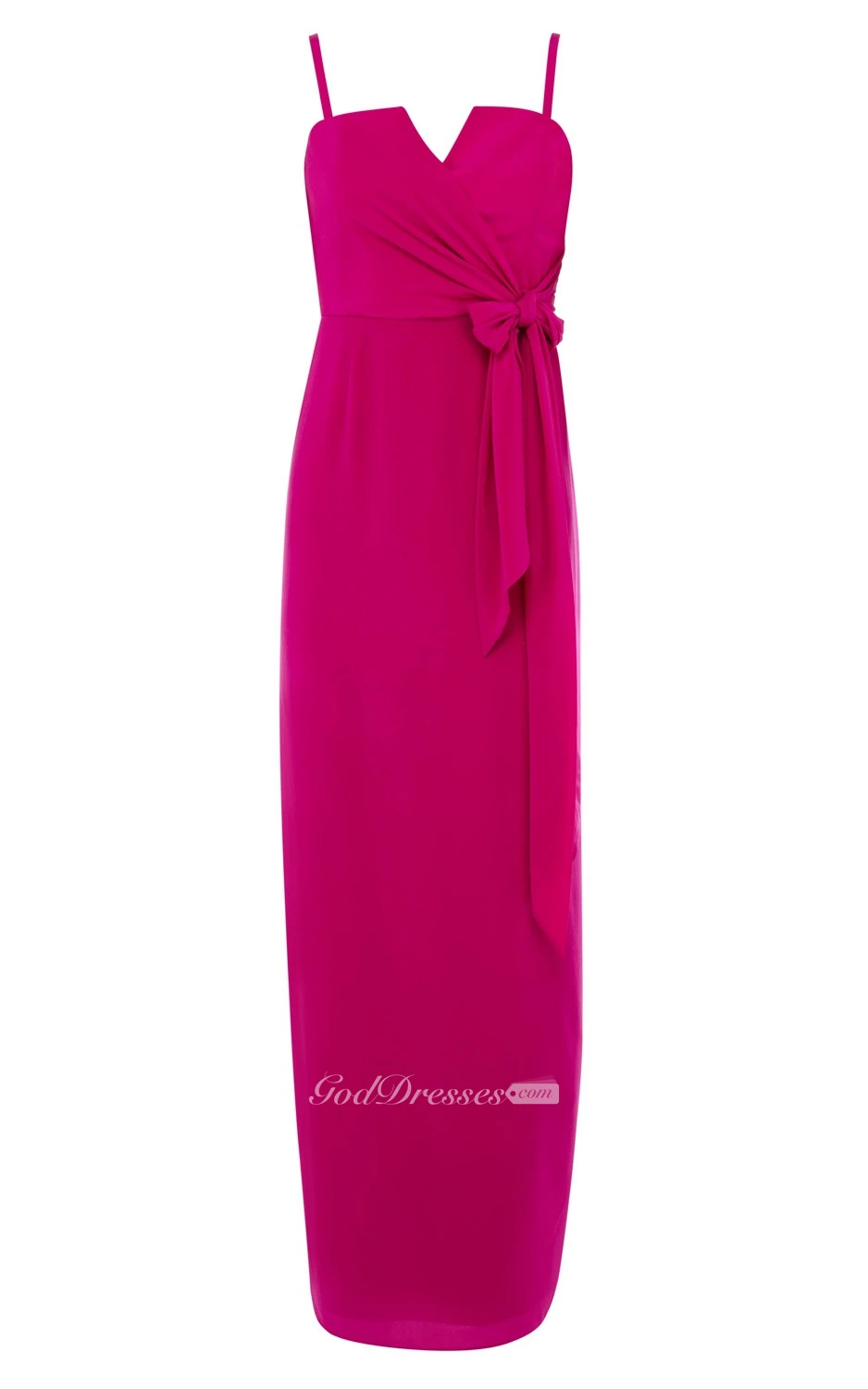 Notched Chiffon Dress With Spaghetti Straps and Ribbon