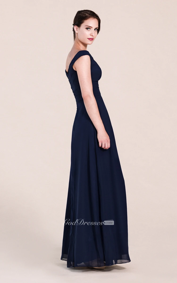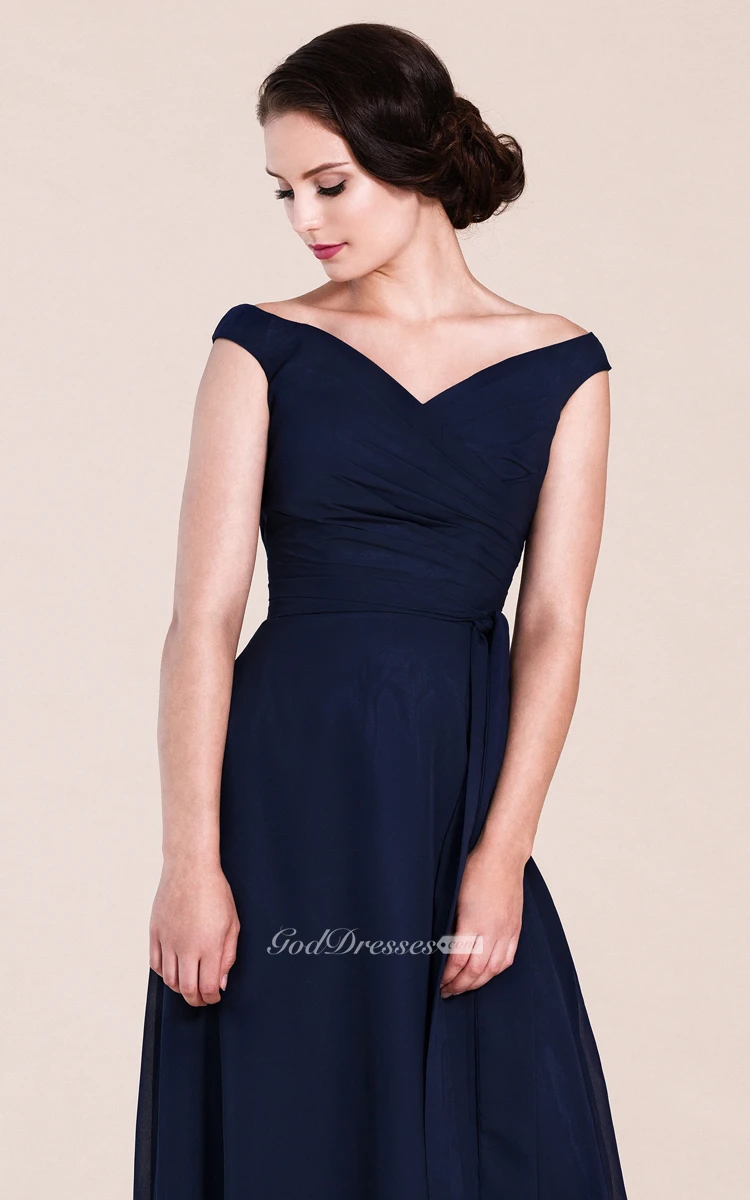 I have a pear shape and was not sure if the dress would look good on me. But it does. Its fit is flattering and comfortable. V neck and zippered back are such great additions. Length is just floor-touching for my height and the fit is perfect. Off-shoulder design adorns the simple style. Chiffon material is superior quality and does not look cheap at all.