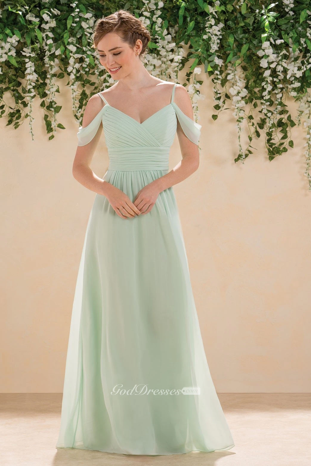Off-Shoulder A-Line Floor-Length Bridesmaid Dress With Ruches And V-Back