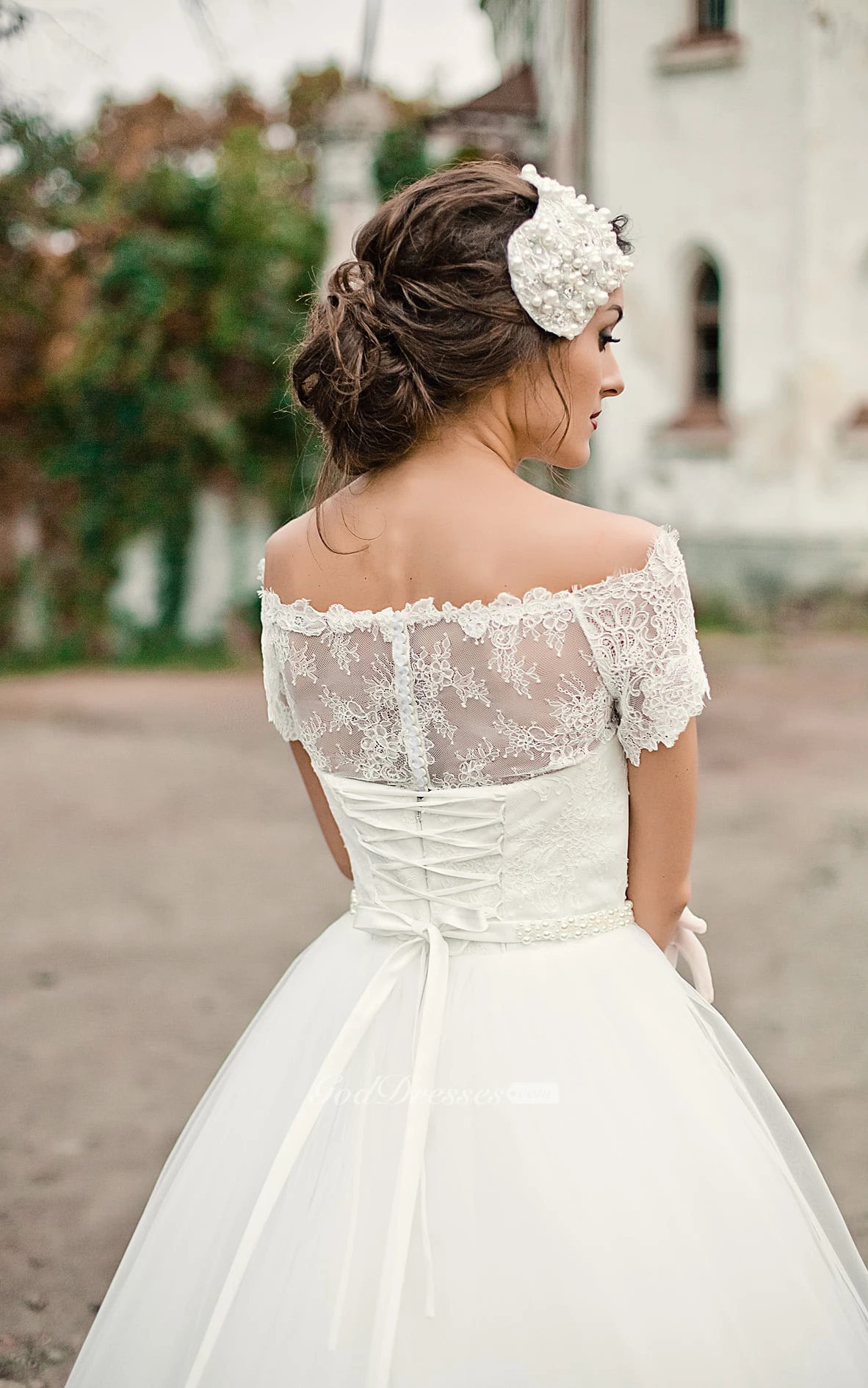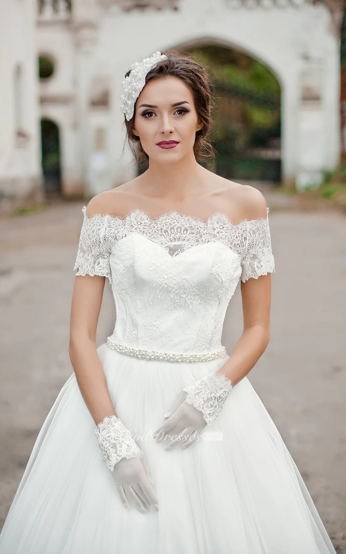 Off-the-shoulder A-line Organza Wedding Dress With Lace Appliques