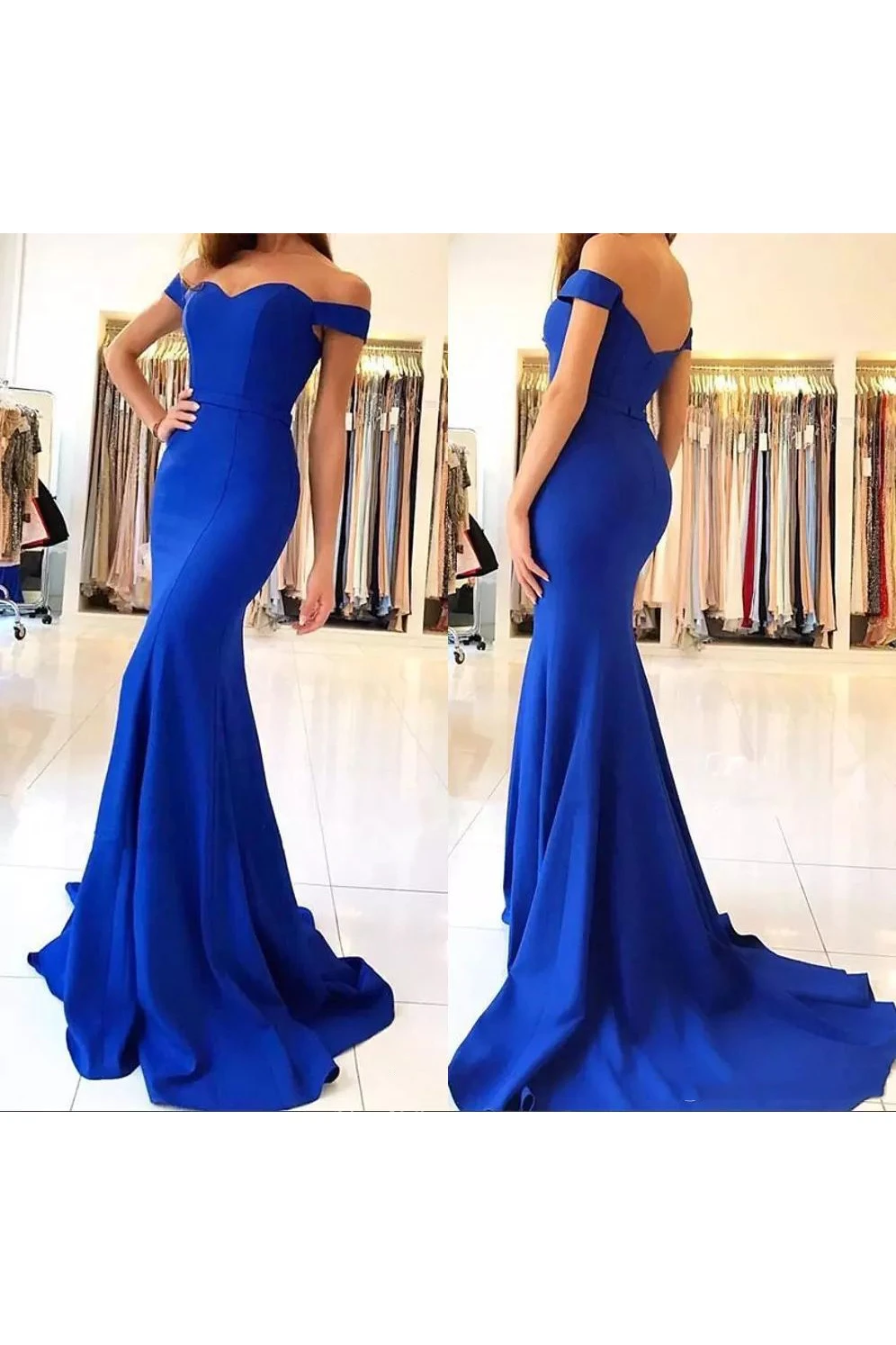 Off-the-shoulder Cap Short Sleeve Sweep Train Satin Trumpet Dress