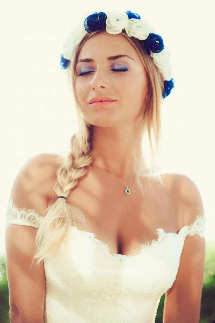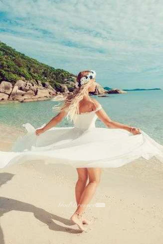 Off-The-Shoulder Lace Beach Chiffon Split Front Wedding Dress With Lace