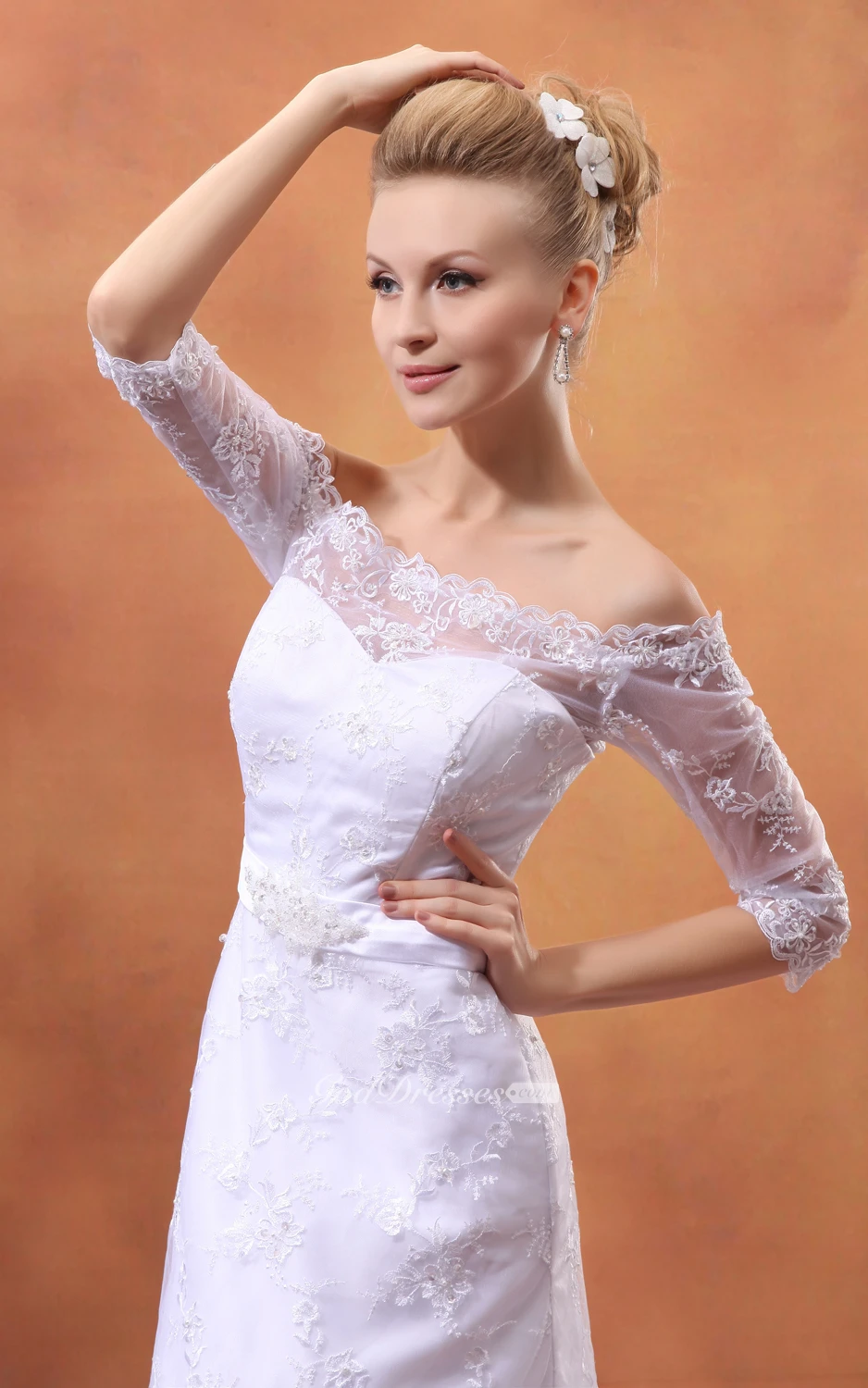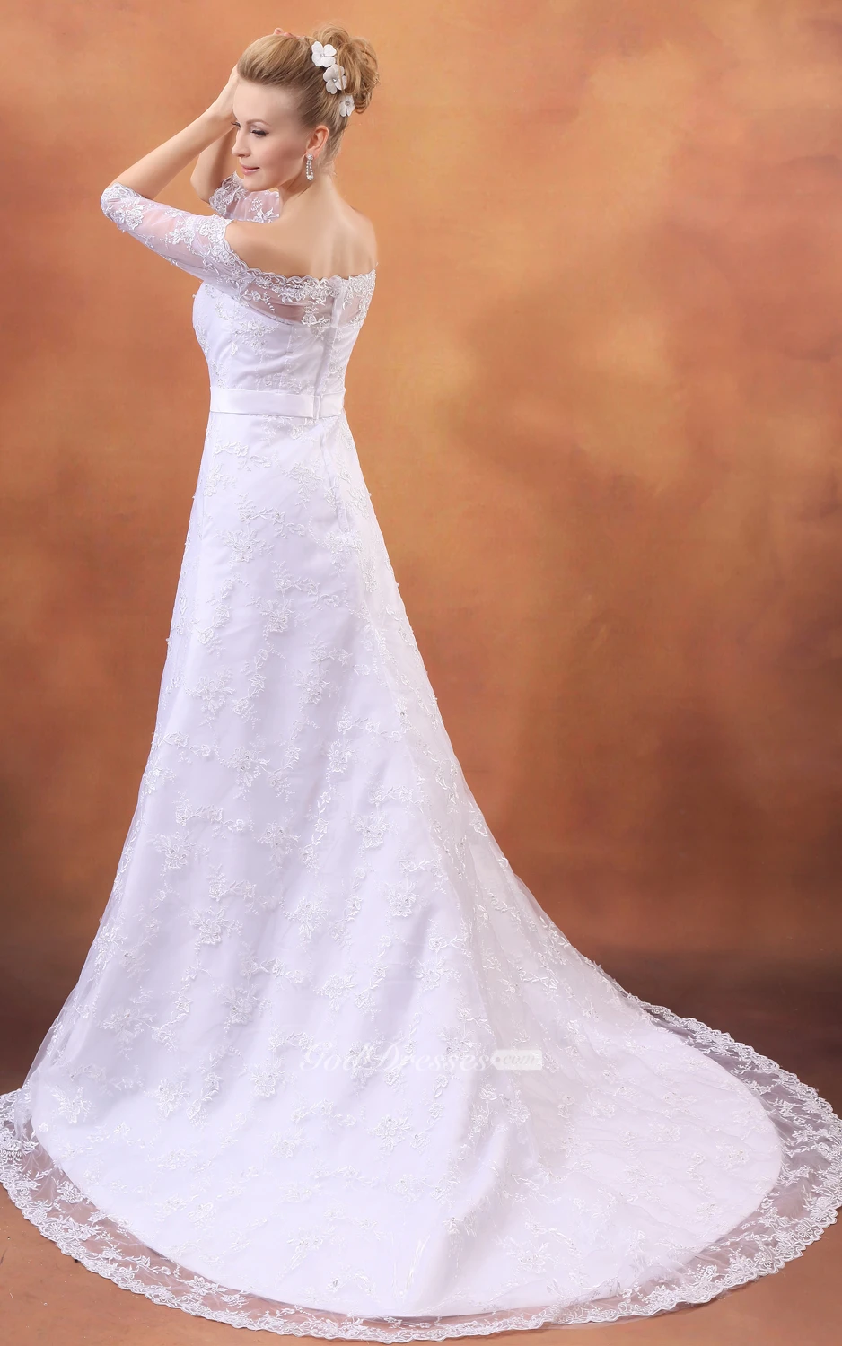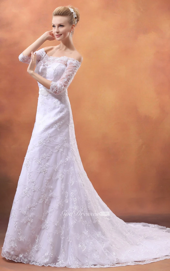 Off-The-Shoulder Laced Dress With Court Train