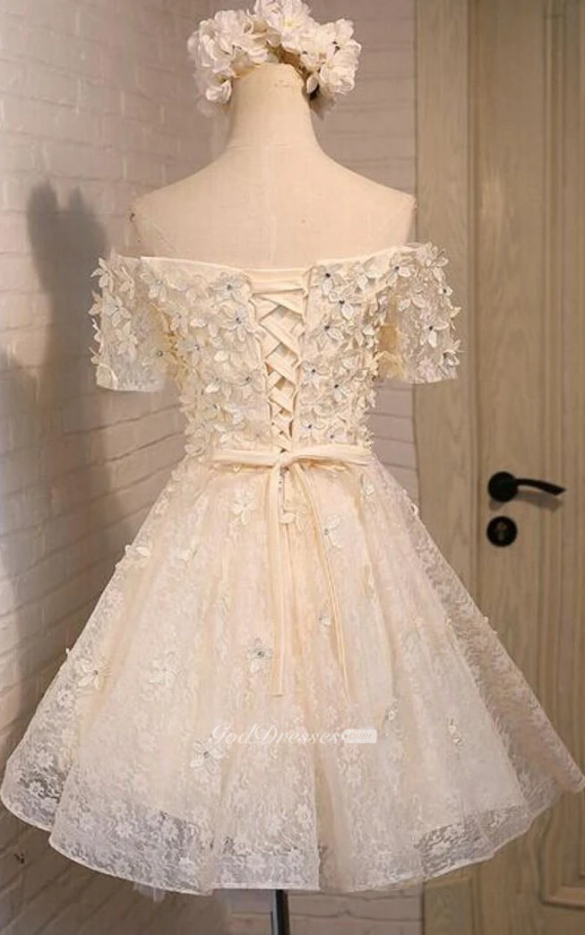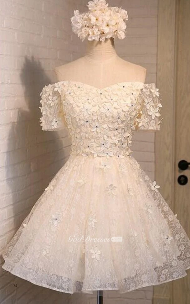 Off-the-shoulder Sweetheart A-line Short Lace Dress