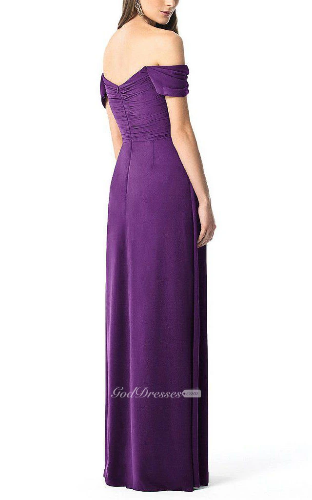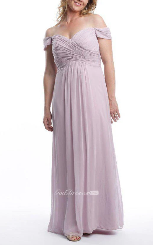 Off-the-shoulder Sweetheart Ruched Long Bridesmaid Dress