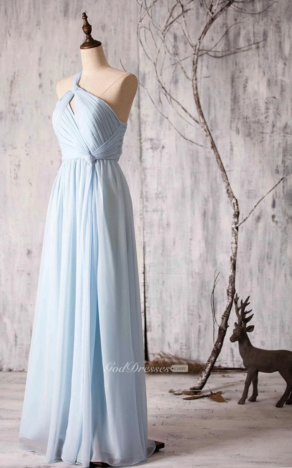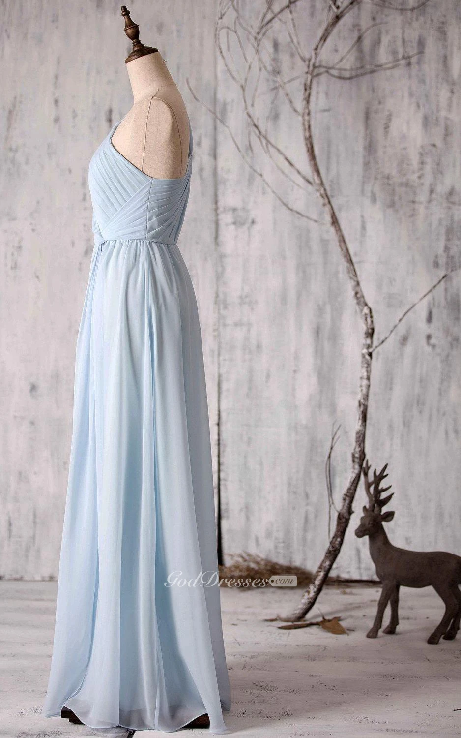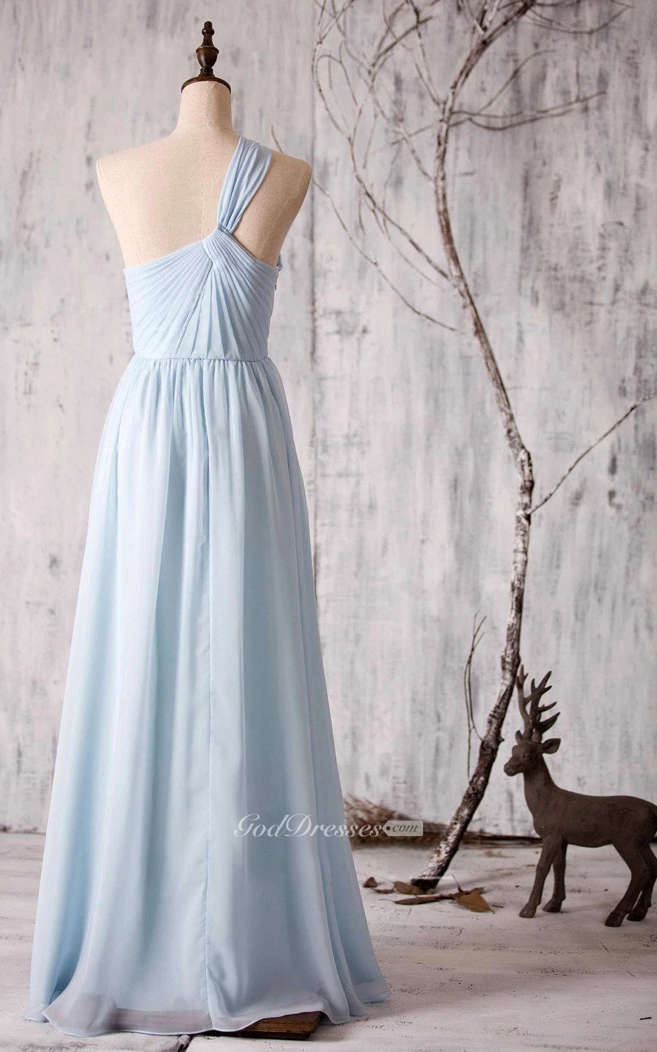 One Shoudler Pleated A-line Chiffon Long Dress Front Split