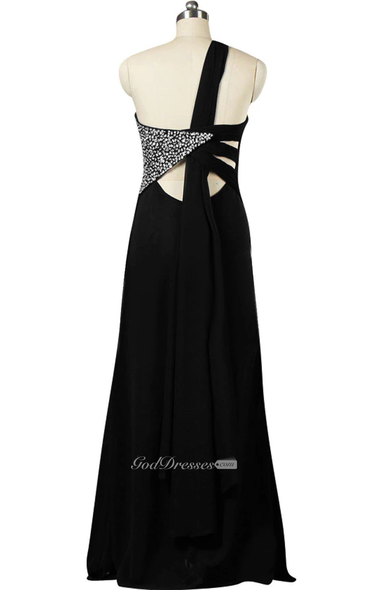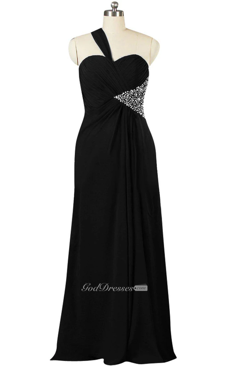 One-shoulder A-line Chiffon Dress With Side Beadings