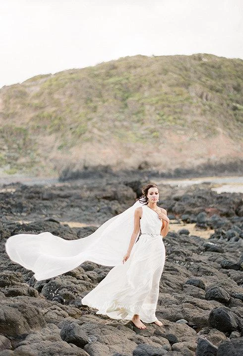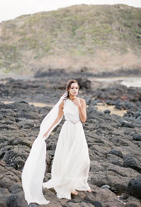 One-Shoulder A-Line Chiffon Dress With Side Slit and Beadings