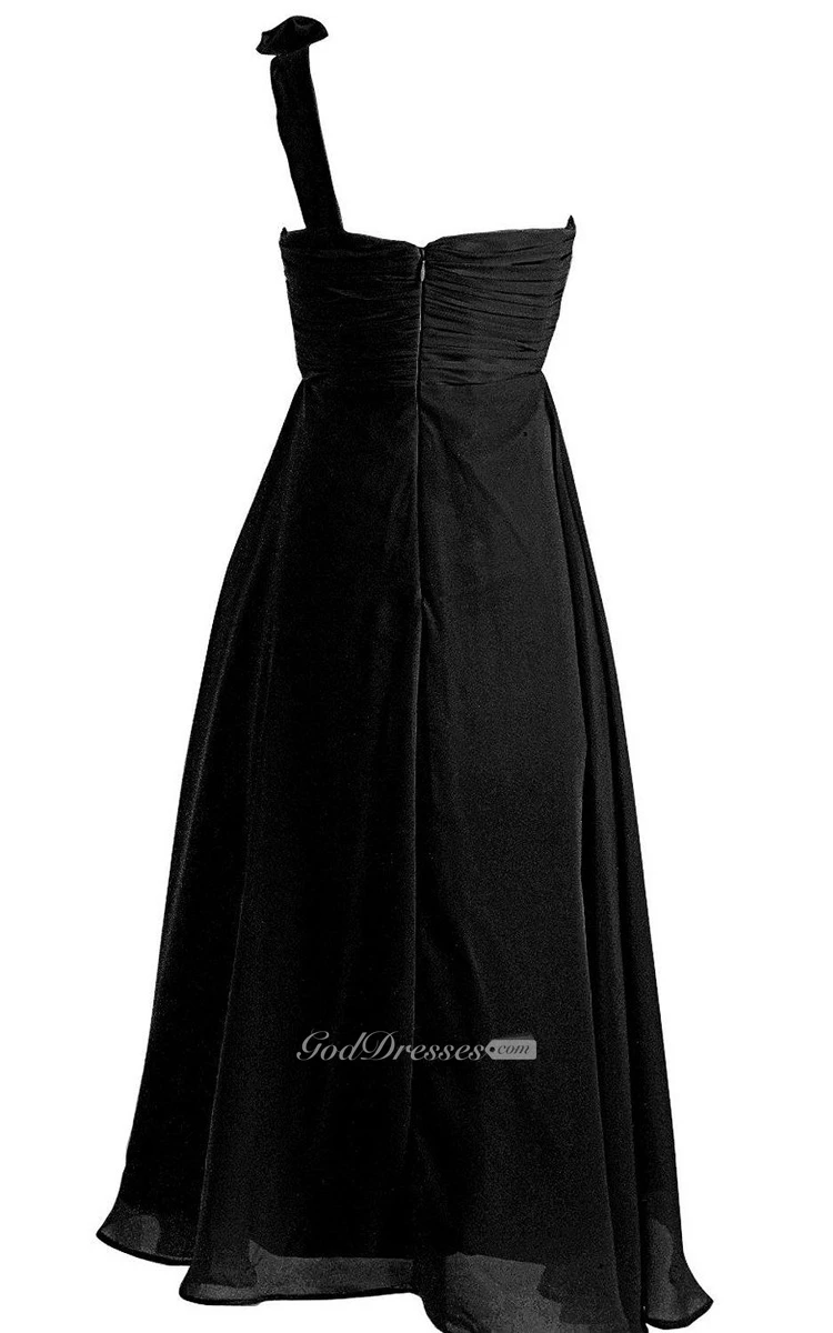 One-shoulder A-line Jersey Dress With Pleats