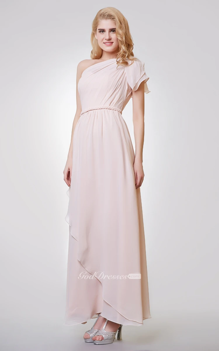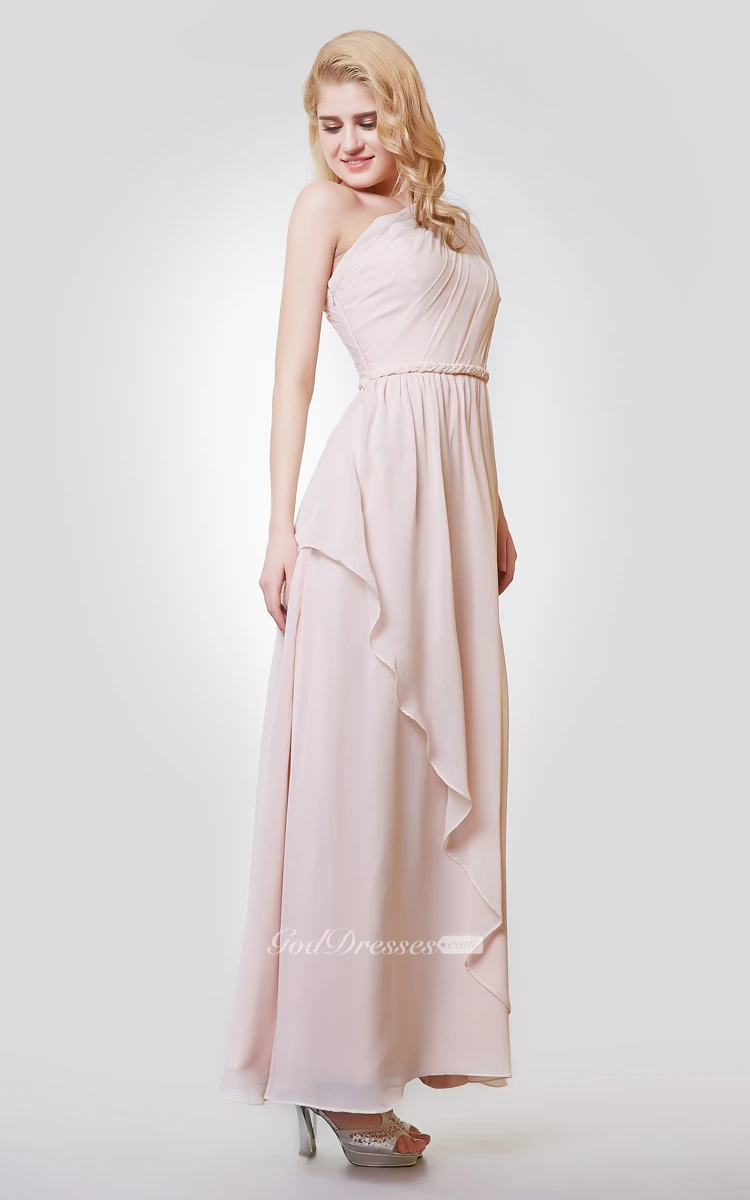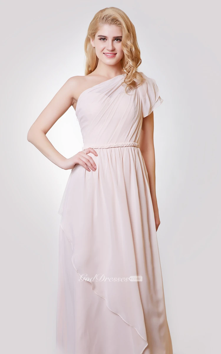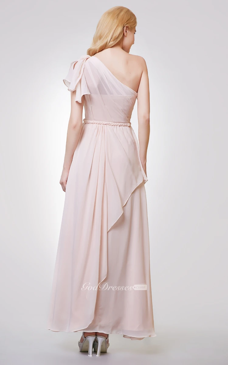 One Shoulder A-line Long Chiffon Dress With Side Draping