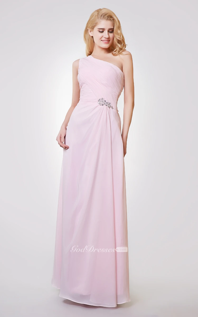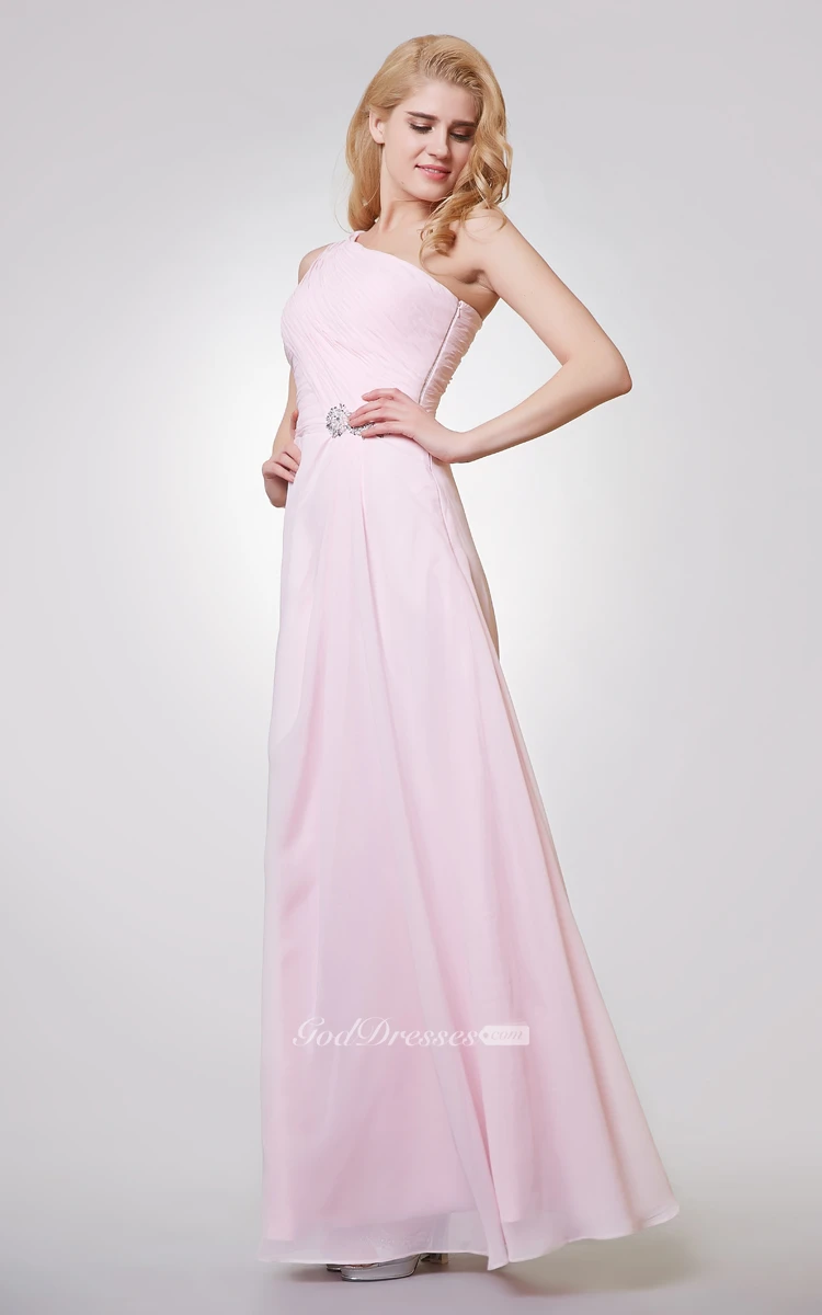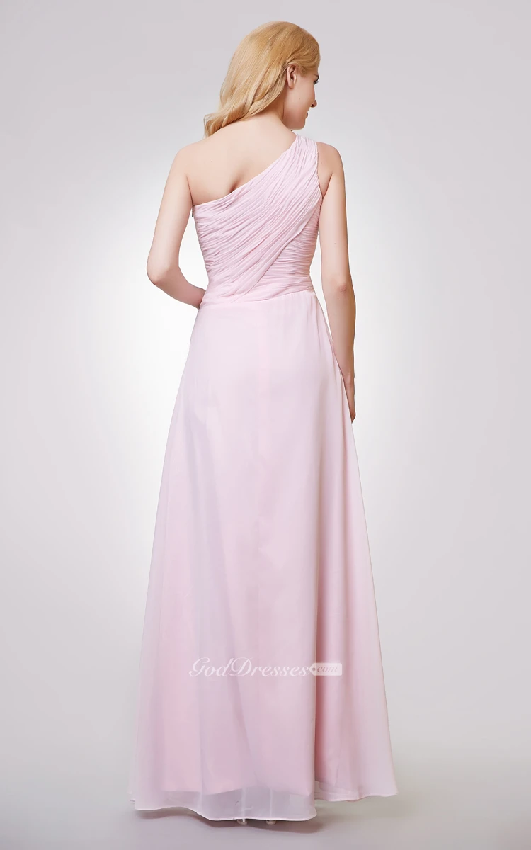 One Shoulder A-line Long Ruched Chiffon Dress