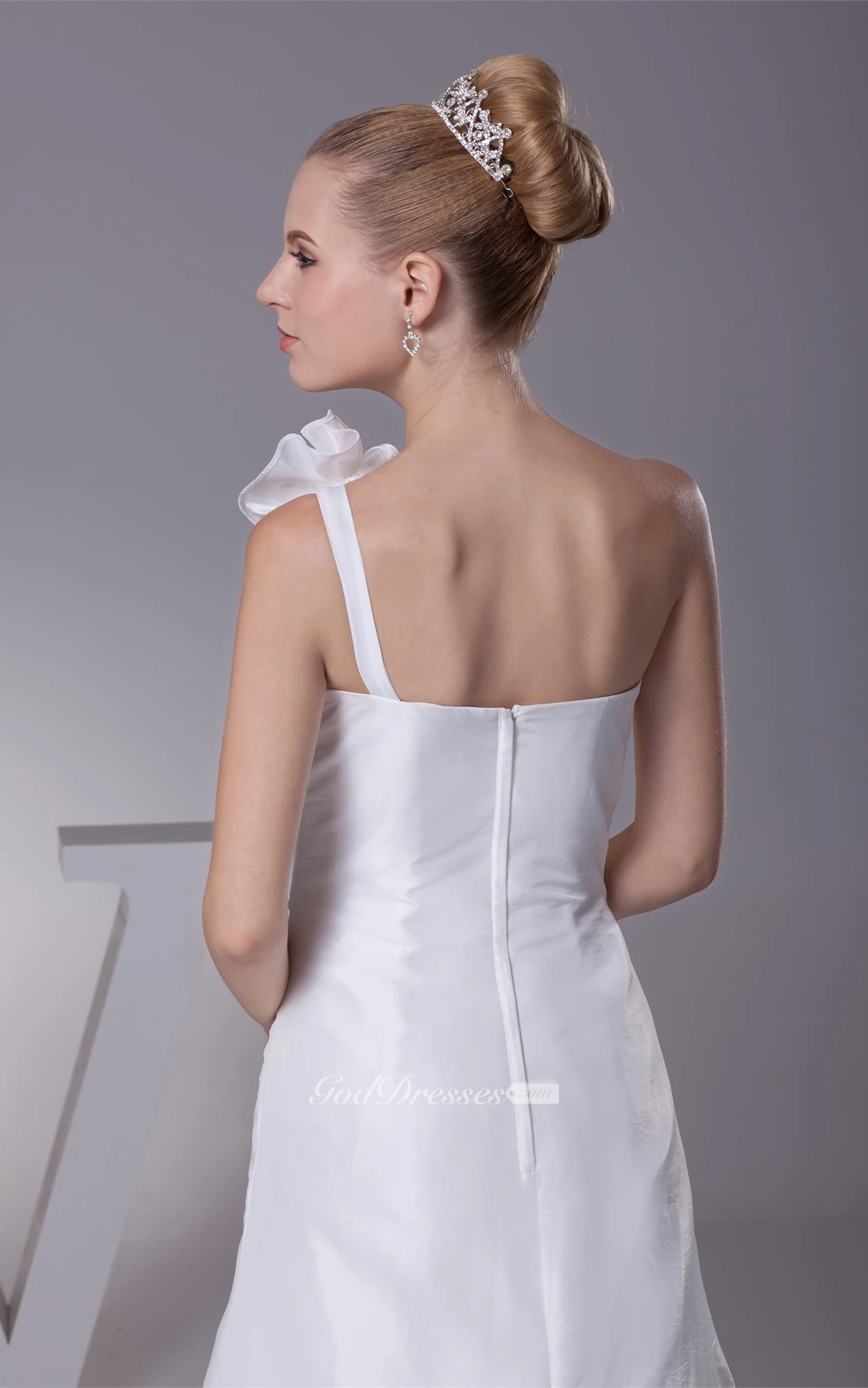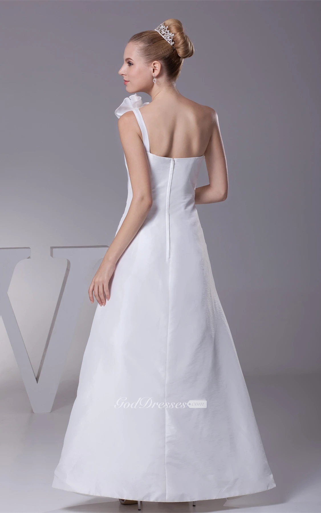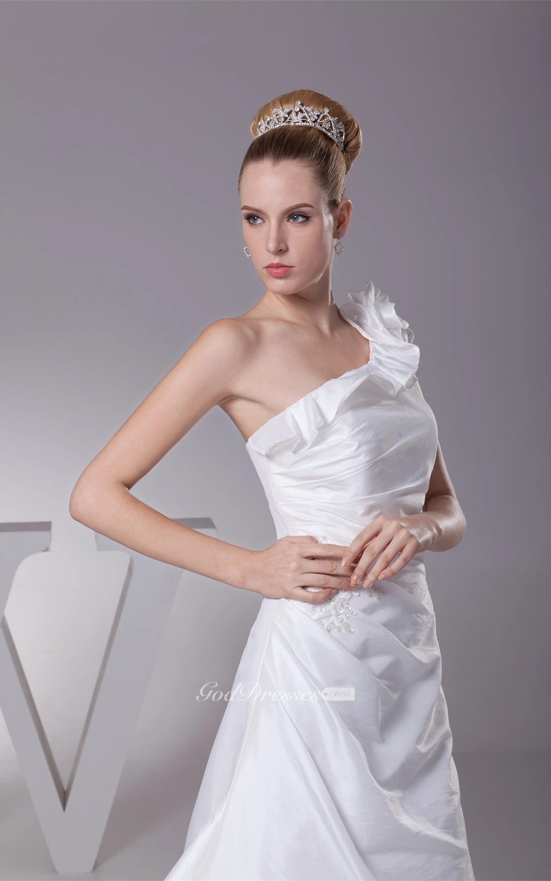One-Shoulder A-Line Ruched Floral Strap and Gown With Appliques