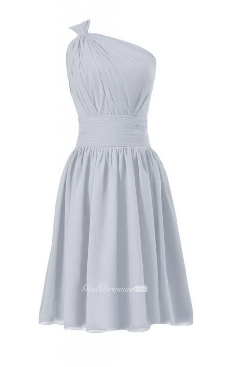 One-shoulder A-line Short Chiffon Dress With Pleats
