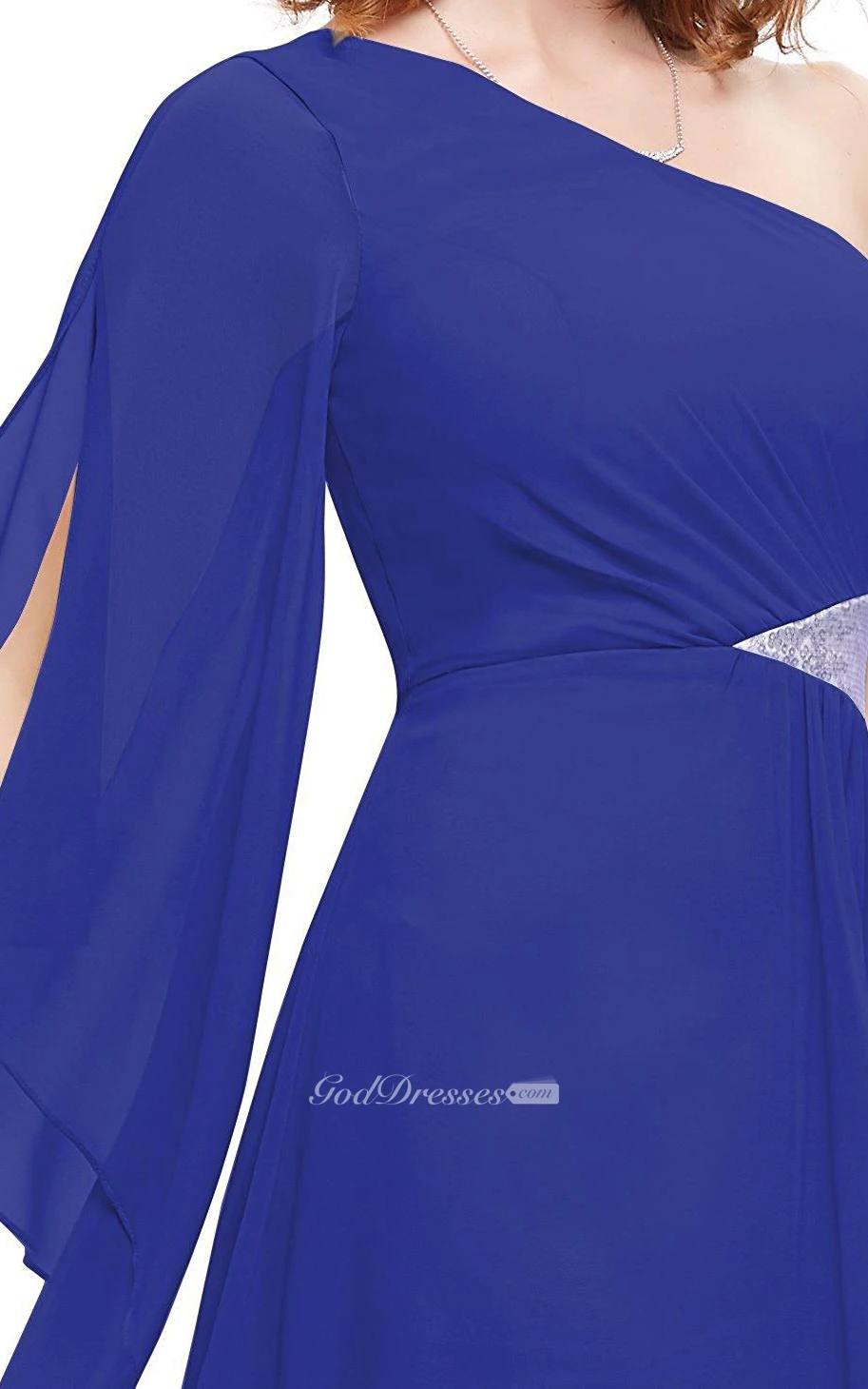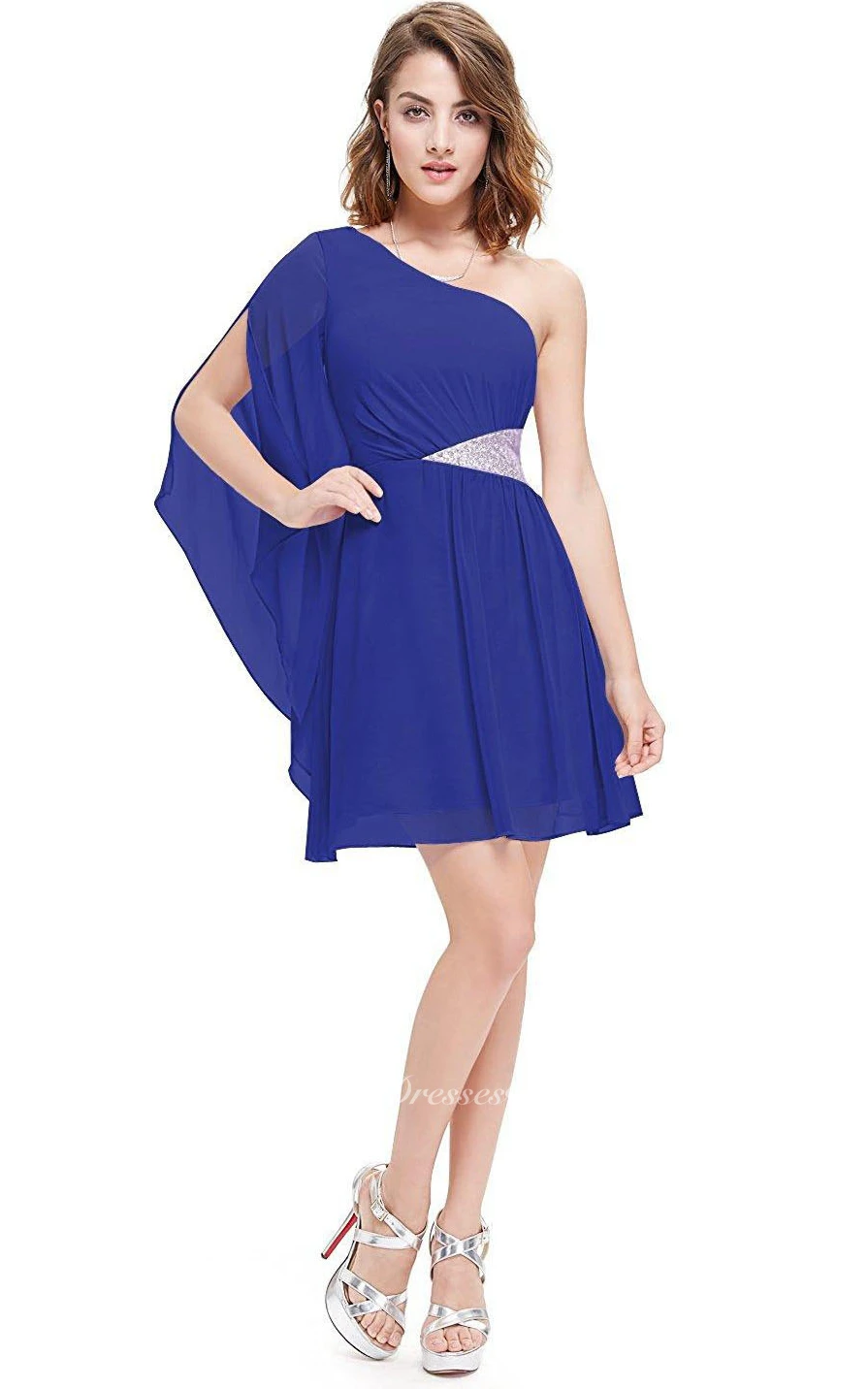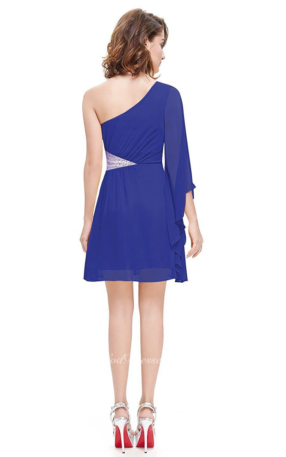 One-shoulder A-line Short Chiffon Dress with Pleats