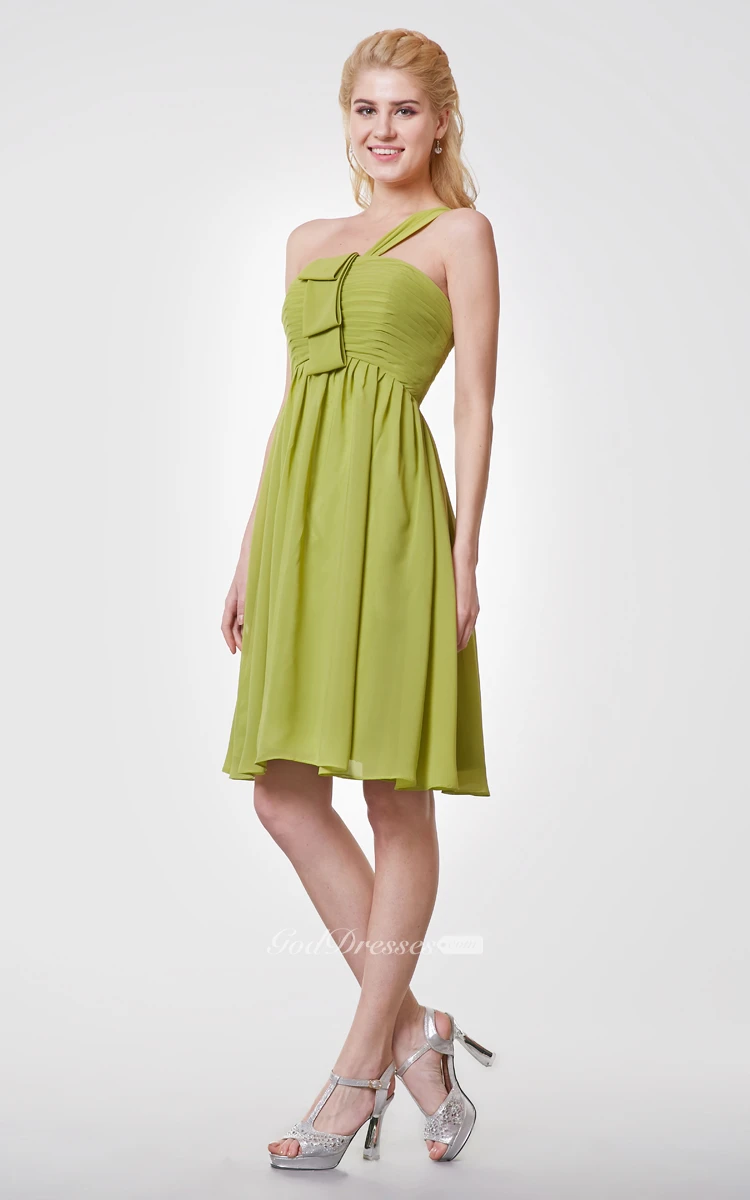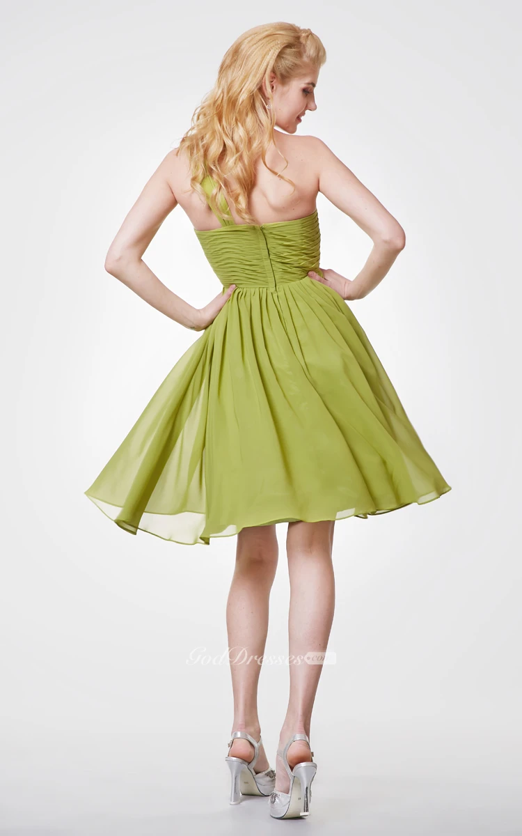 One Shoulder A-line Short Chiffon Dress With Pleats