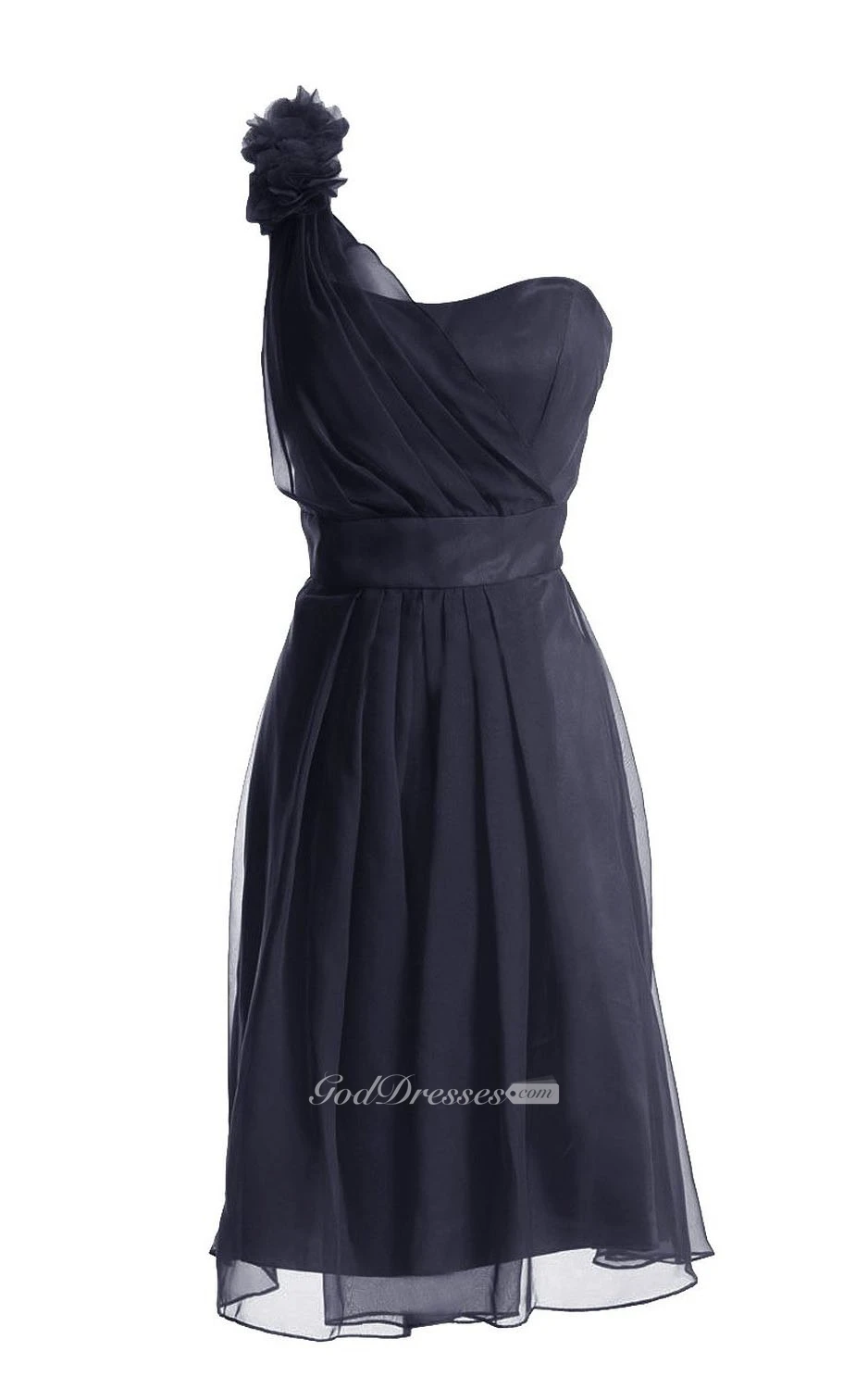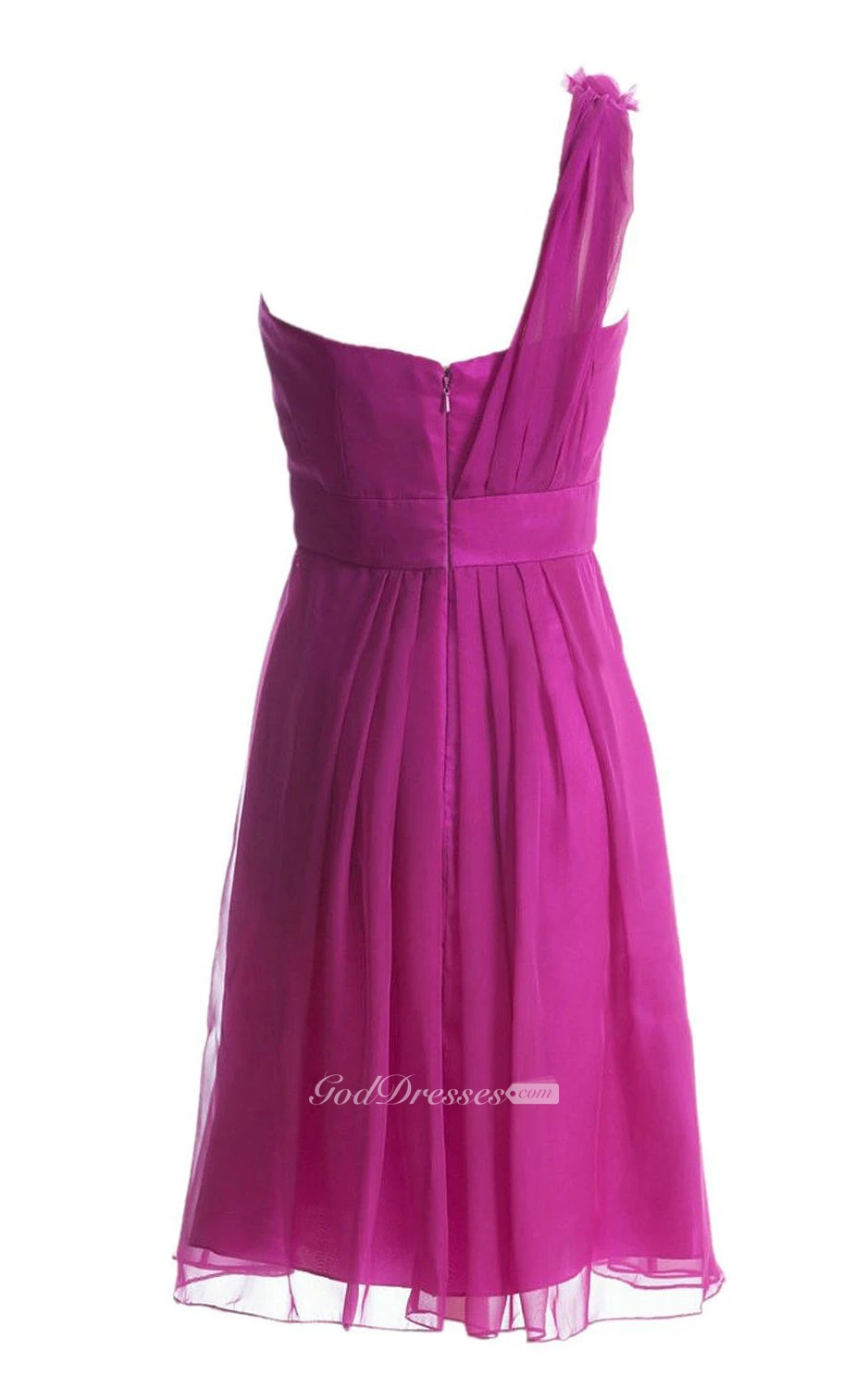 One-shoulder Appliqued Ruched Knee-length Chiffon Dress