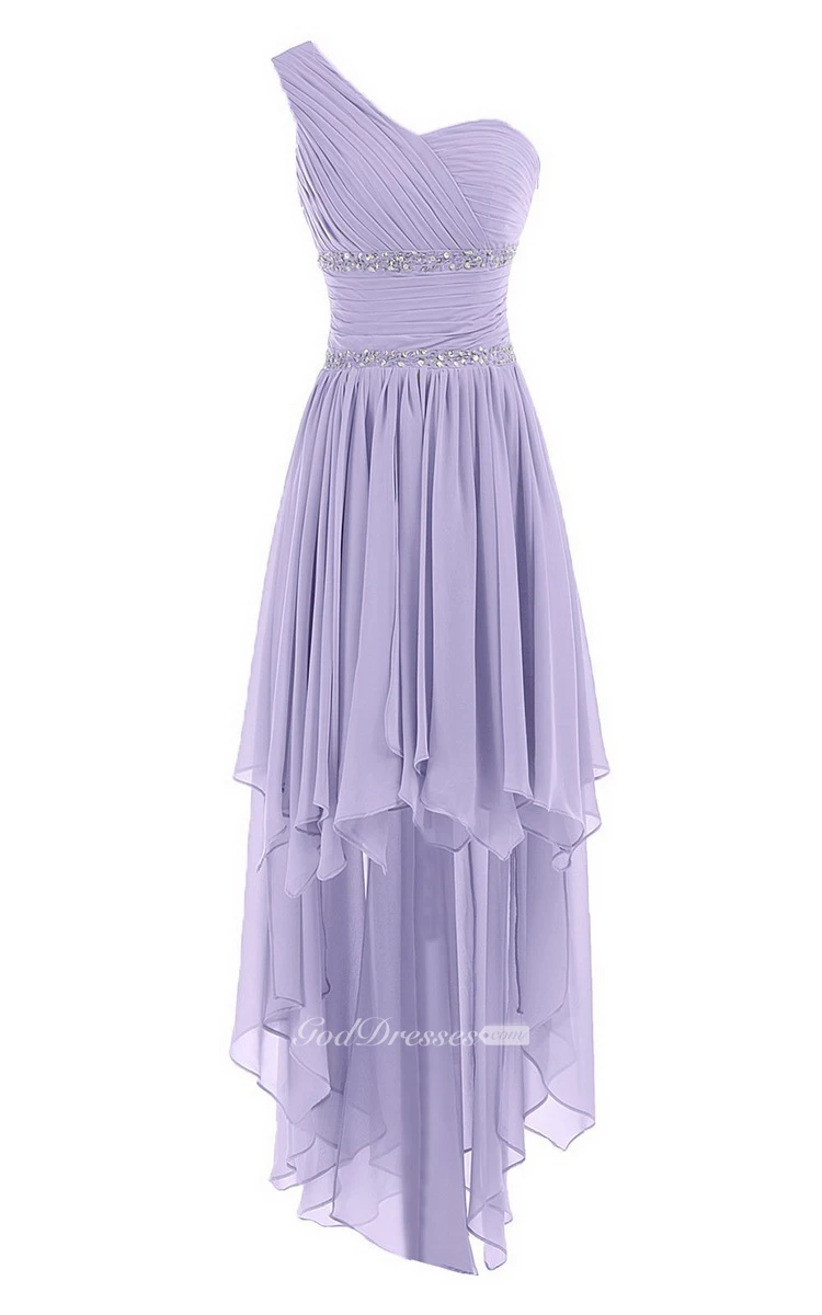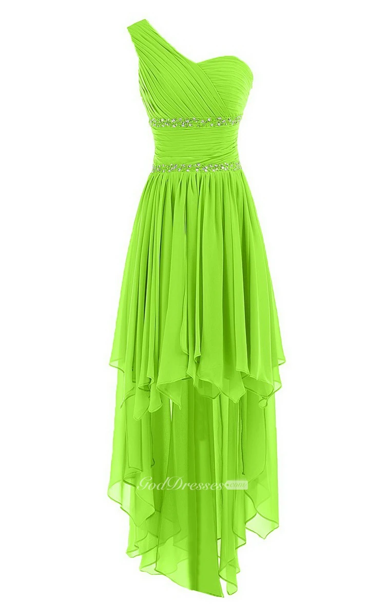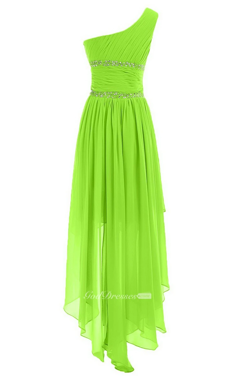 One-shoulder Asymmetrical Chiffon Dress With Sequins