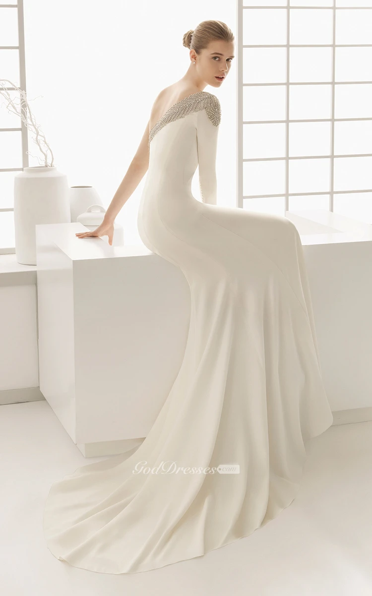 One-Shoulder Beaded Long-Sleeved Dress
