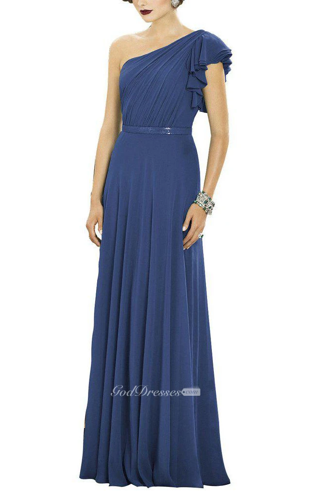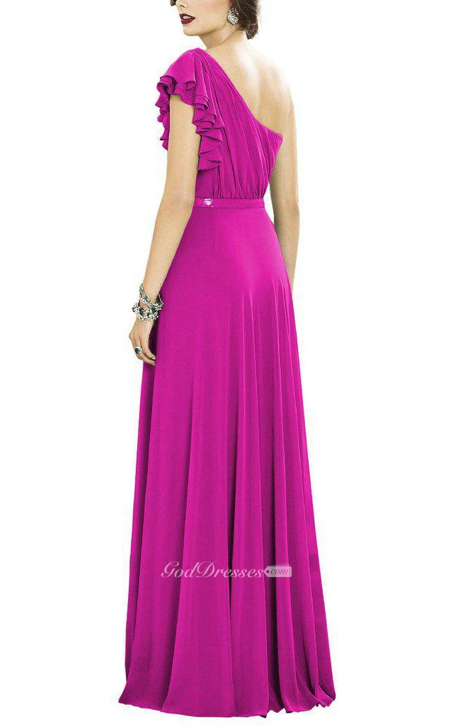 One Shoulder Butterfly Sleeve Ruched Long Dress