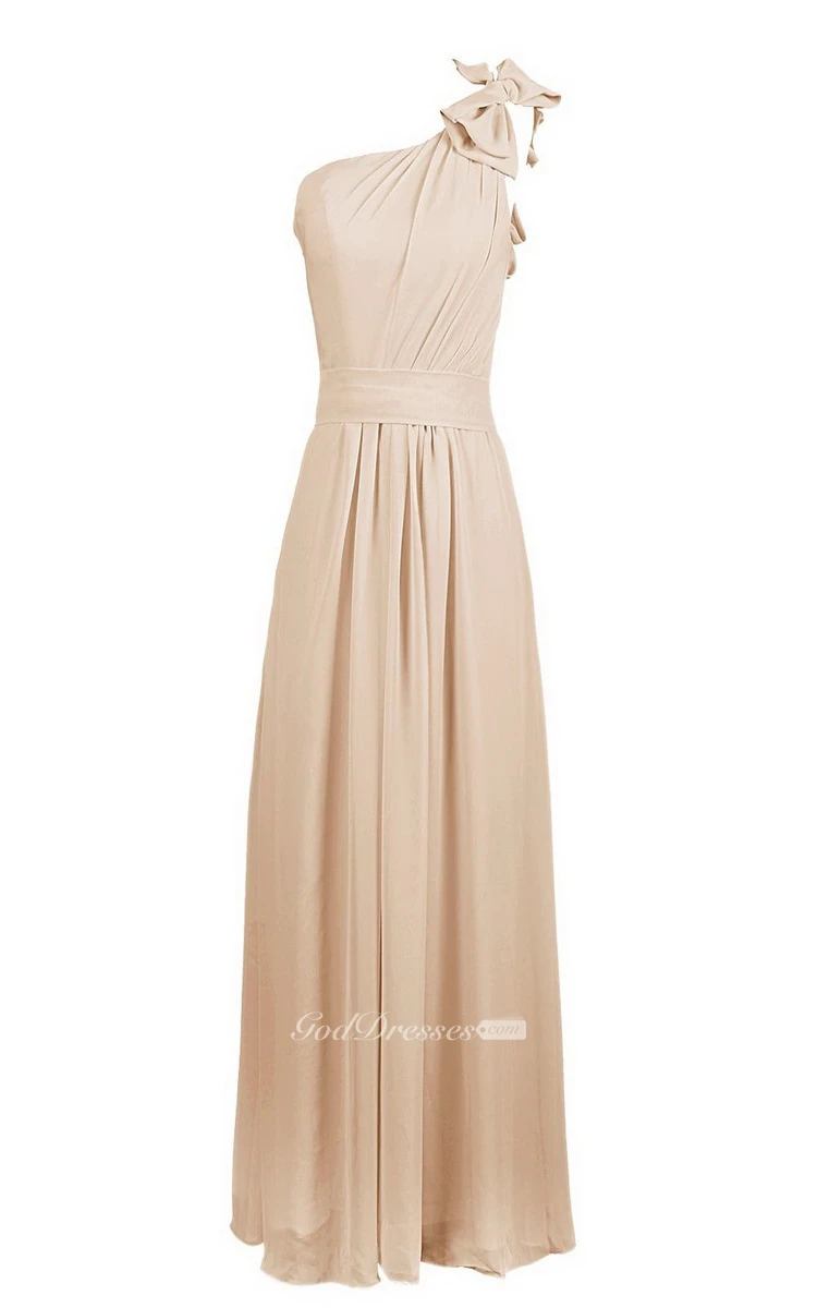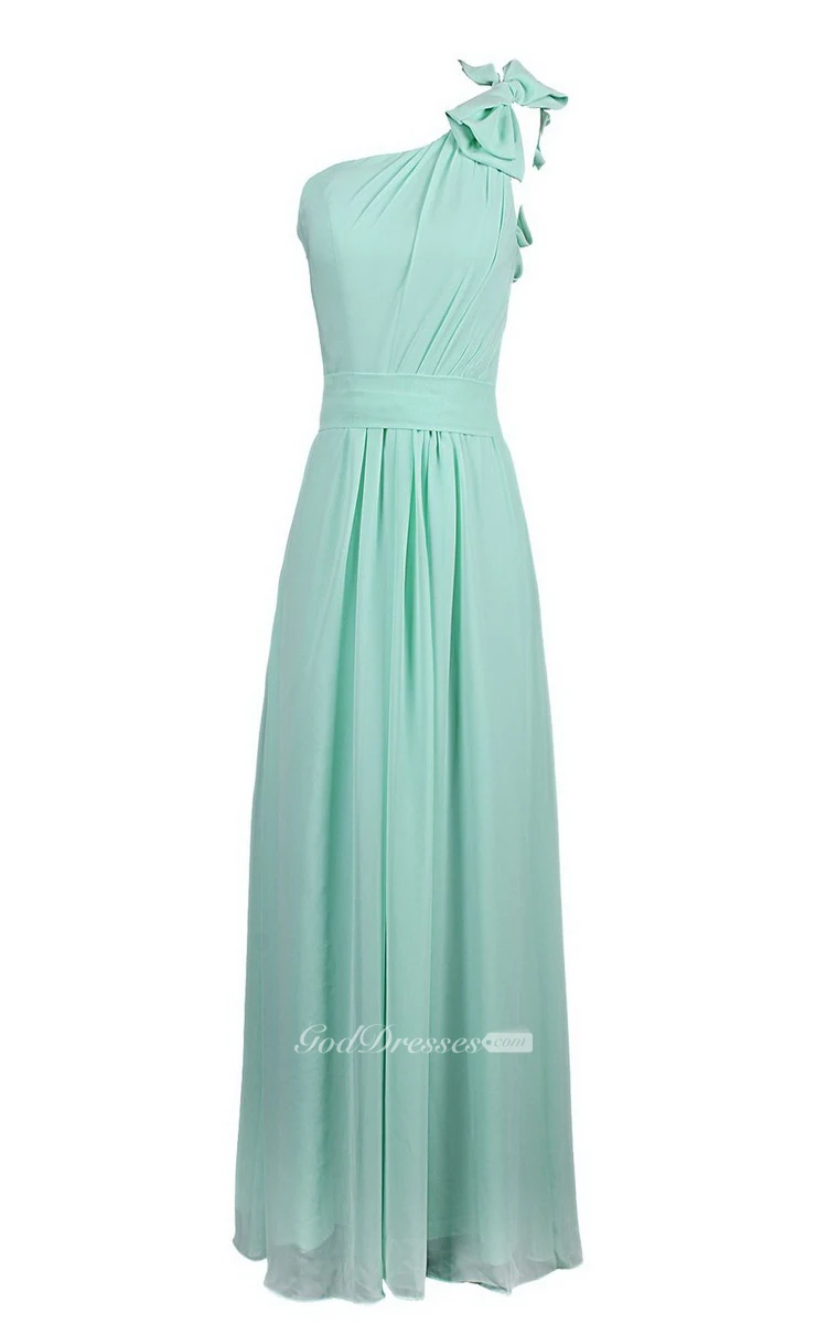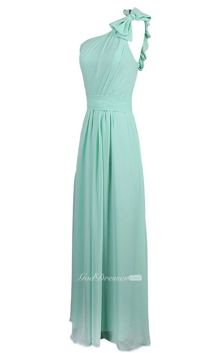 One-shoulder Chiffon Dress With Bow at Shoulder