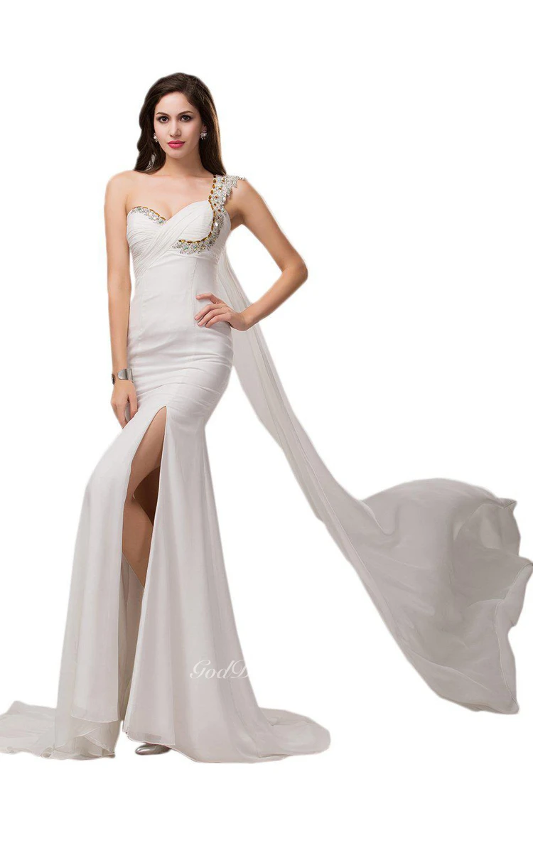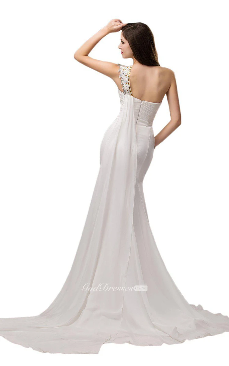 One-shoulder Chiffon Dress With Crystal Detail