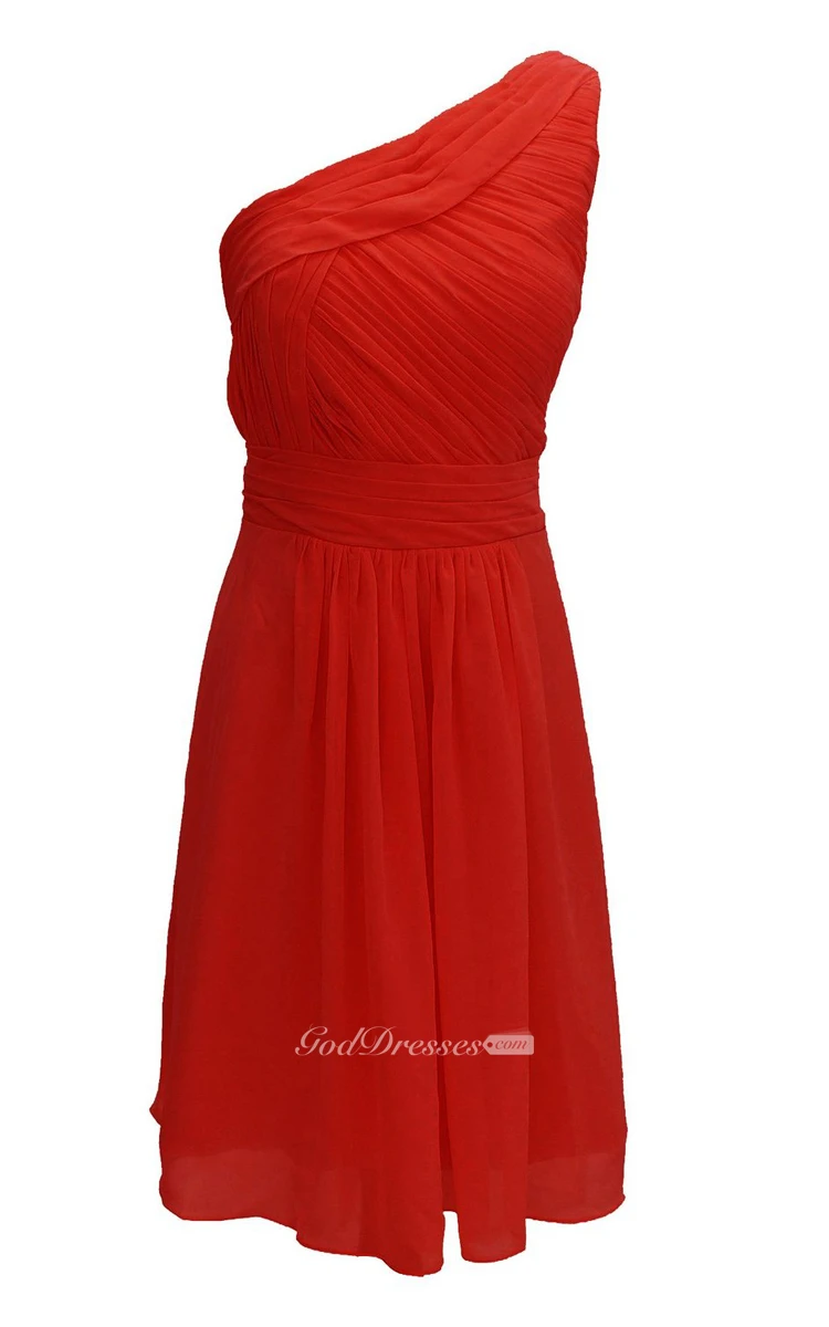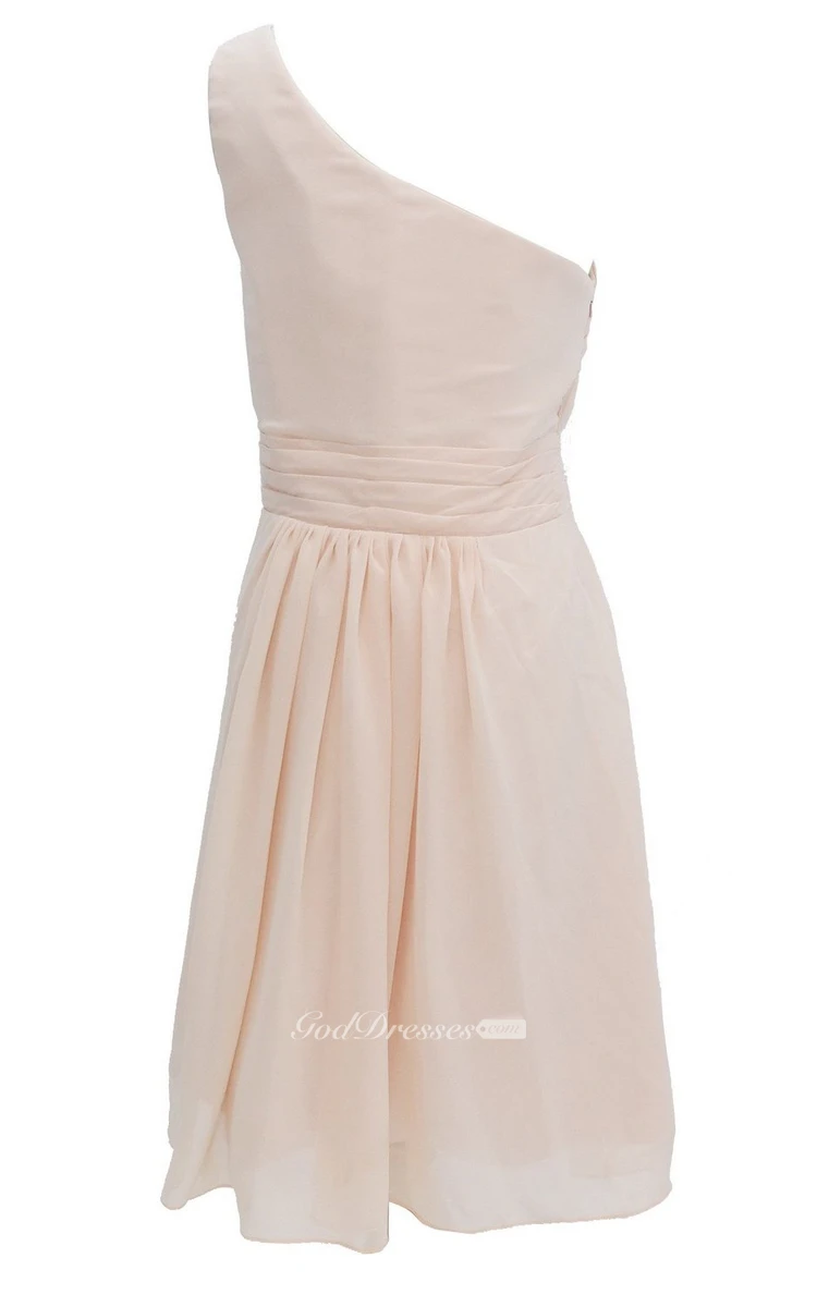 One-shoulder Chiffon Dress With Pleat and Ruching