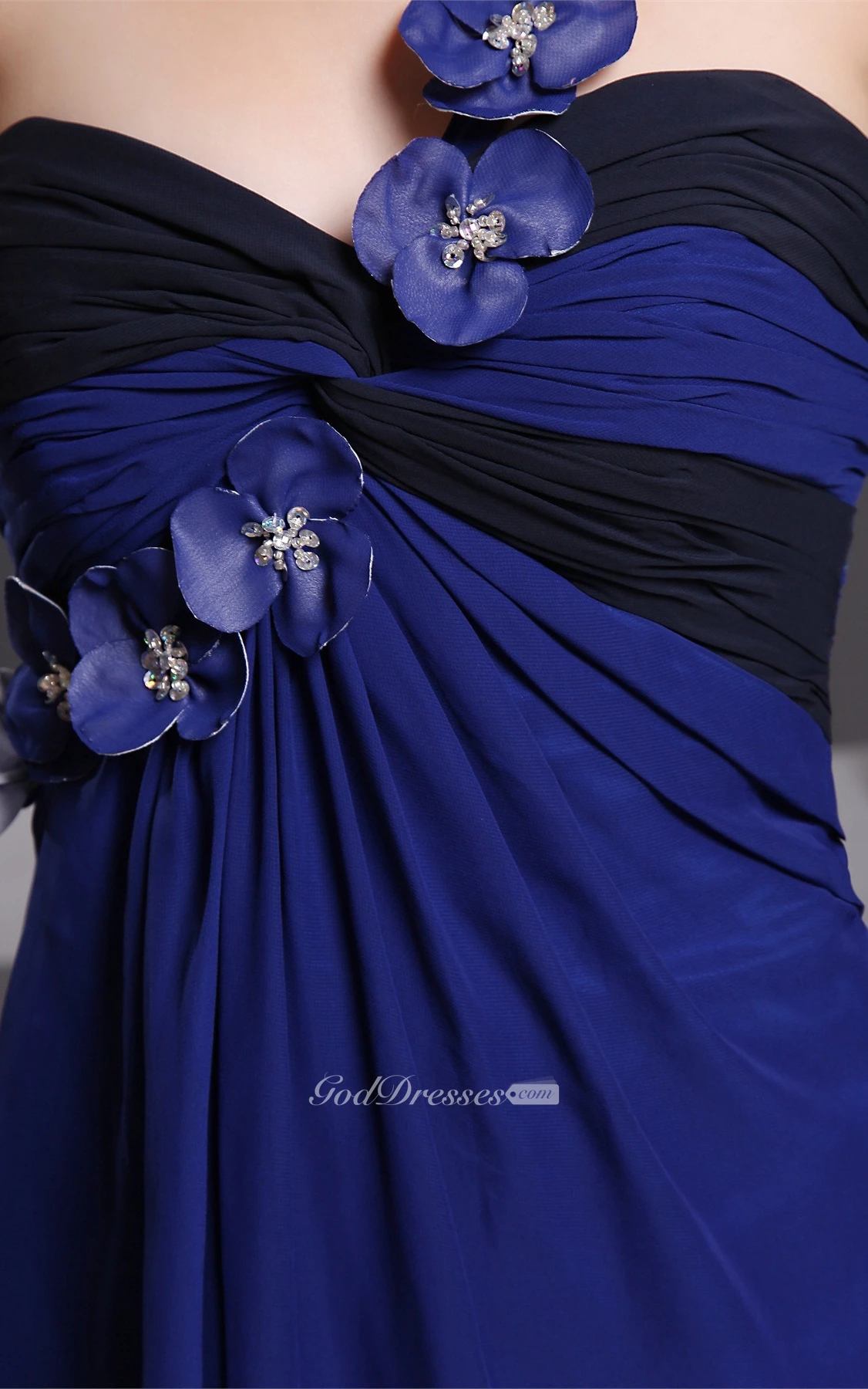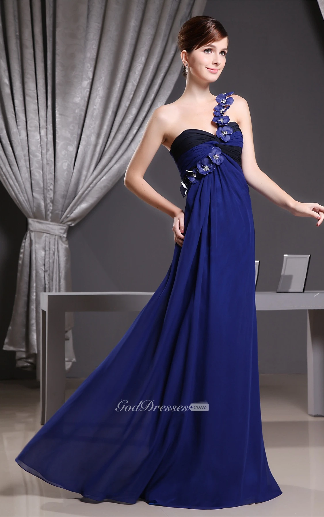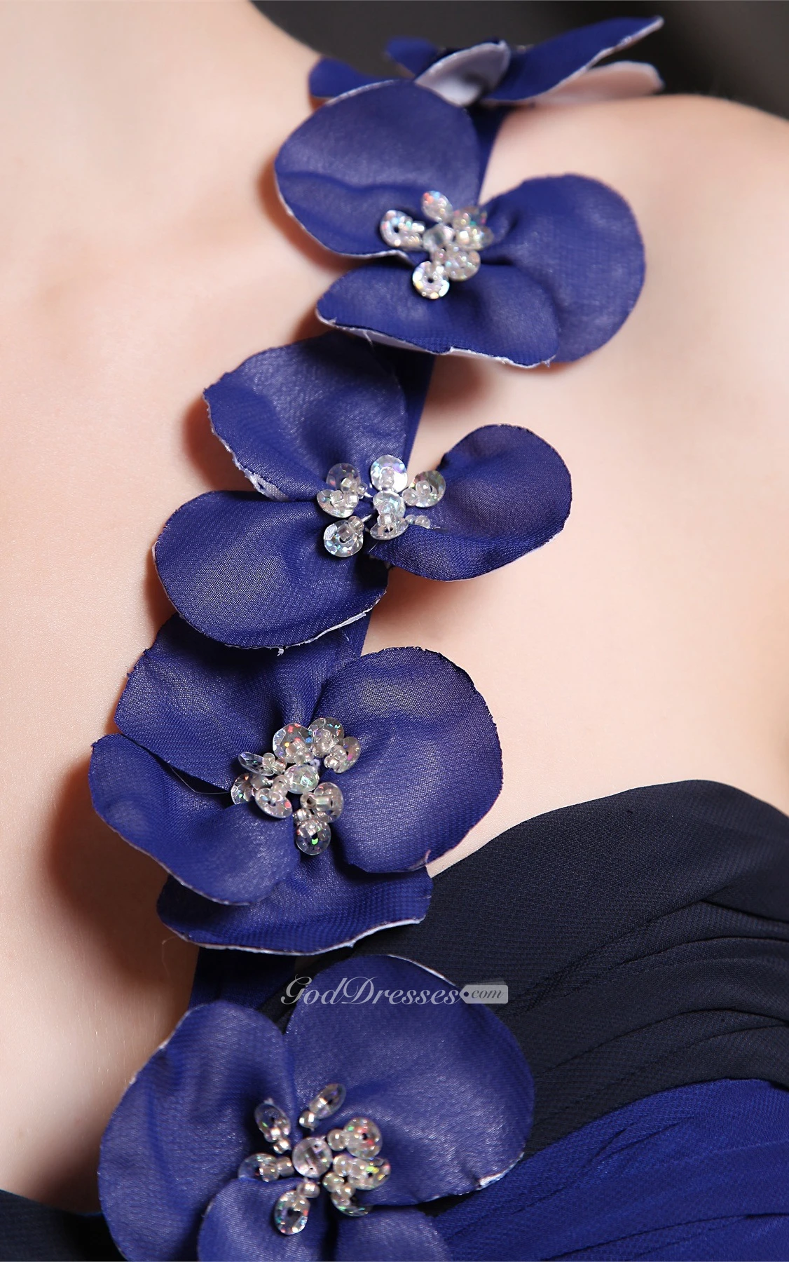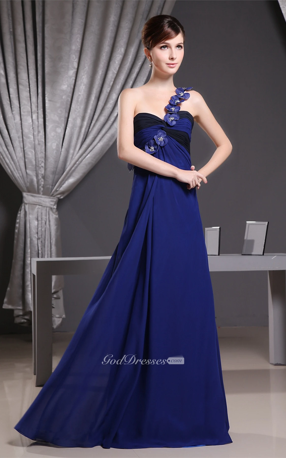 One-Shoulder Chiffon Maxi Ruched Dress With Flower