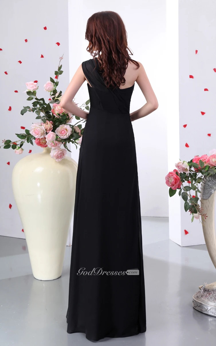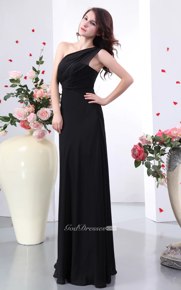 One-Shoulder Chiffon Ruched Floor-Length Dress