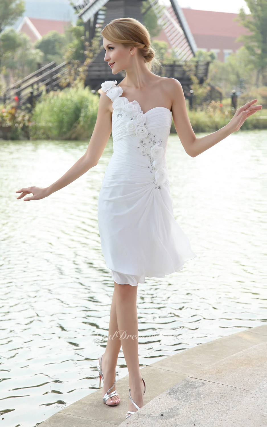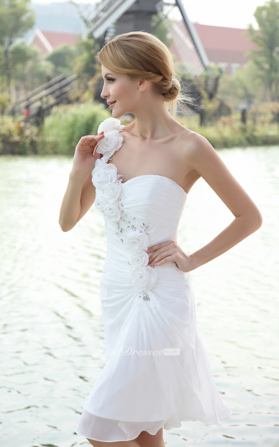 One-Shoulder Chiffon Short Dress With Floral Strap