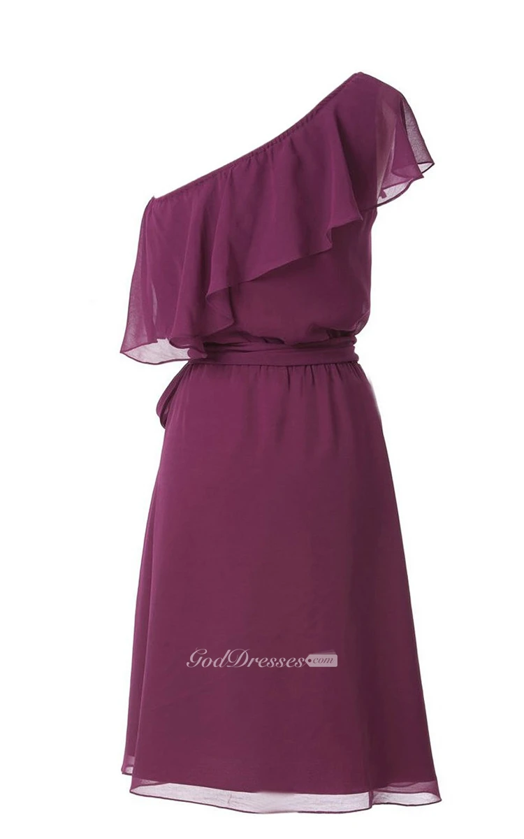 One-shoulder Cowl Chiffon A-line Gown With Sash