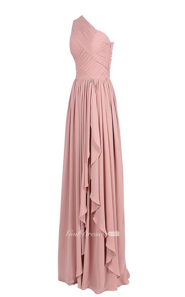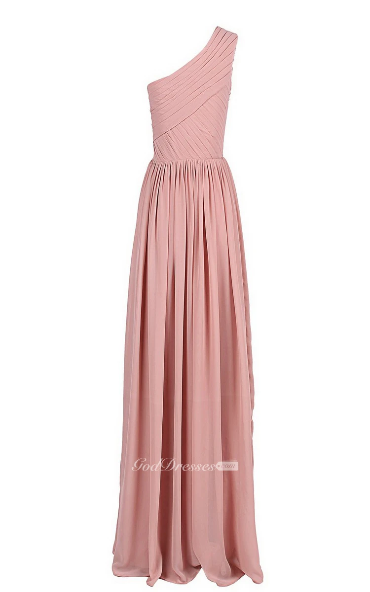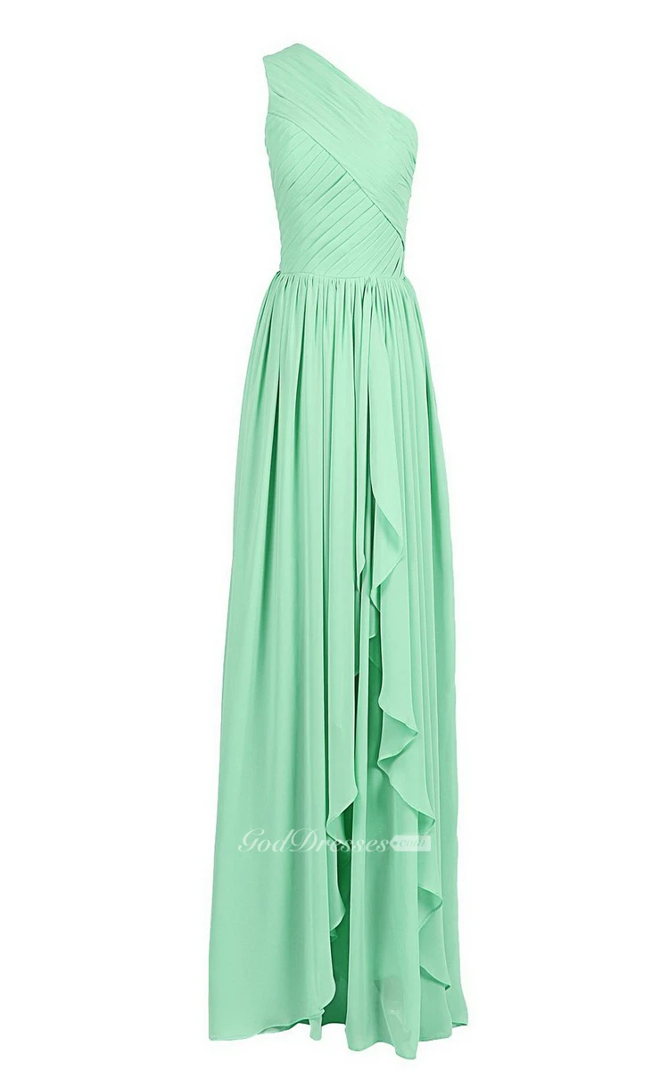 One-shoulder Drapped Chiffon A-line Gown With Pleats